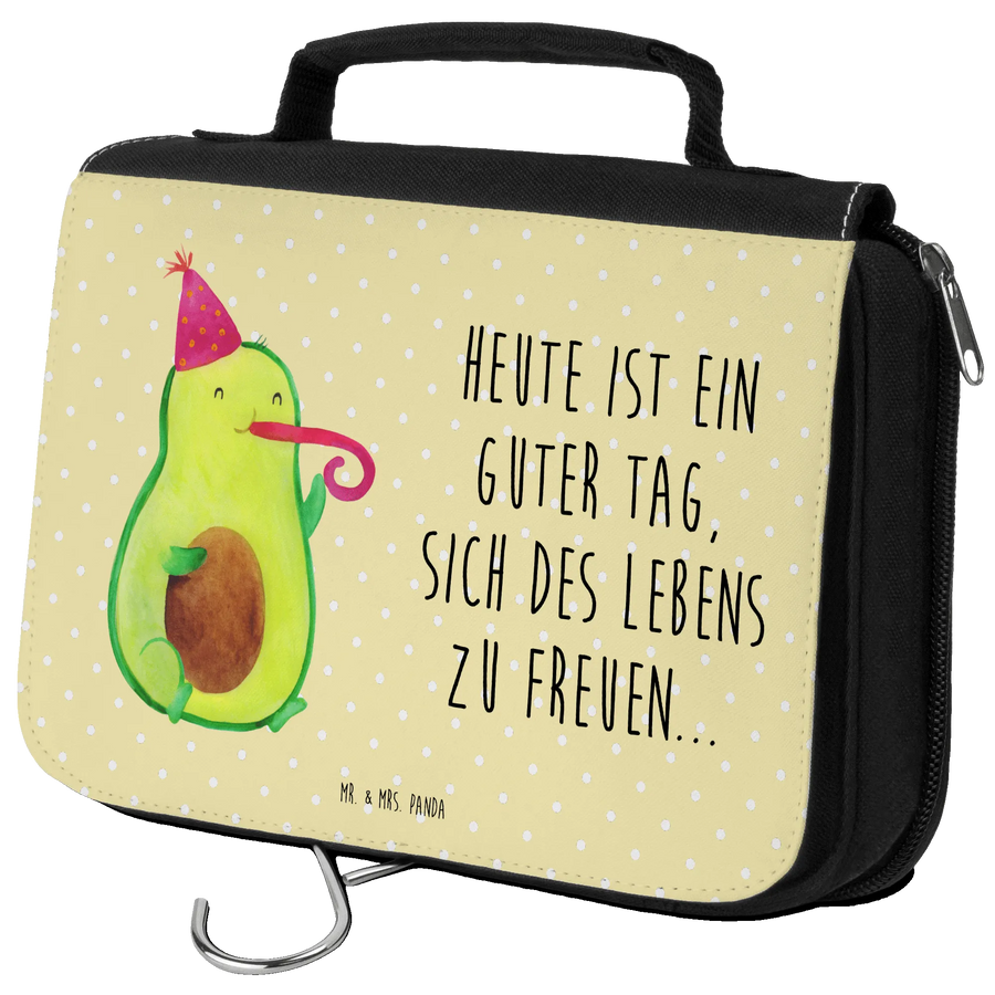Dieser Kulturbeutel von Mr. & Mrs. Panda ist der ideale Begleiter für alle, die das Leben gerne in vollen Zügen genießen! Mit seinem fröhlichen Design und dem süßen Avocado-Motiv, das eine Avocado mit einem Partyhut zeigt, bringt er sofort gute Laune und hebt die Stimmung.