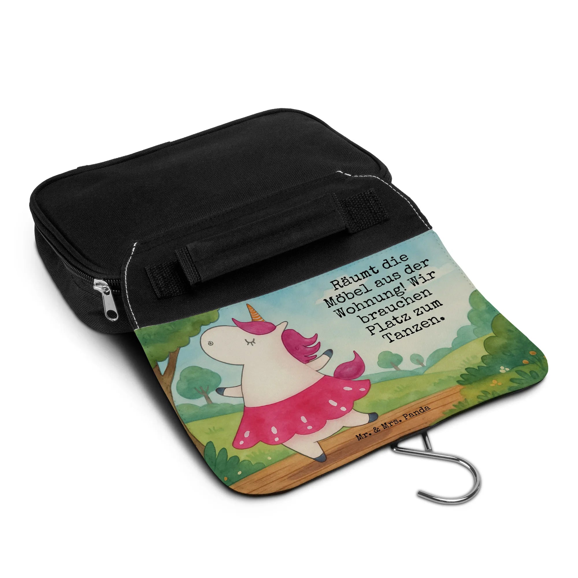 Zauberhaft, praktisch und lebensfroh: Unser Kulturbeutel Einhorn Ballerina von Mr. & Mrs. Panda vereint ein liebevoll gezeichnetes Einhorn im Tütü mit einem frechen Spruch: Räumt die Möbel aus der Wohnung! Wir brauchen Platz zum Tanzen. Das Motiv auf hellem Hintergrund macht die Kosmetiktasche zum perfekten Begleiter für Badezimmer, Reisen und Tanzstunden.