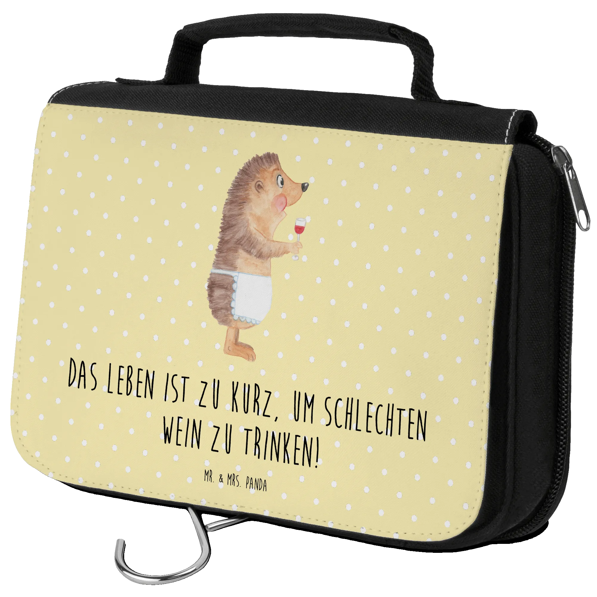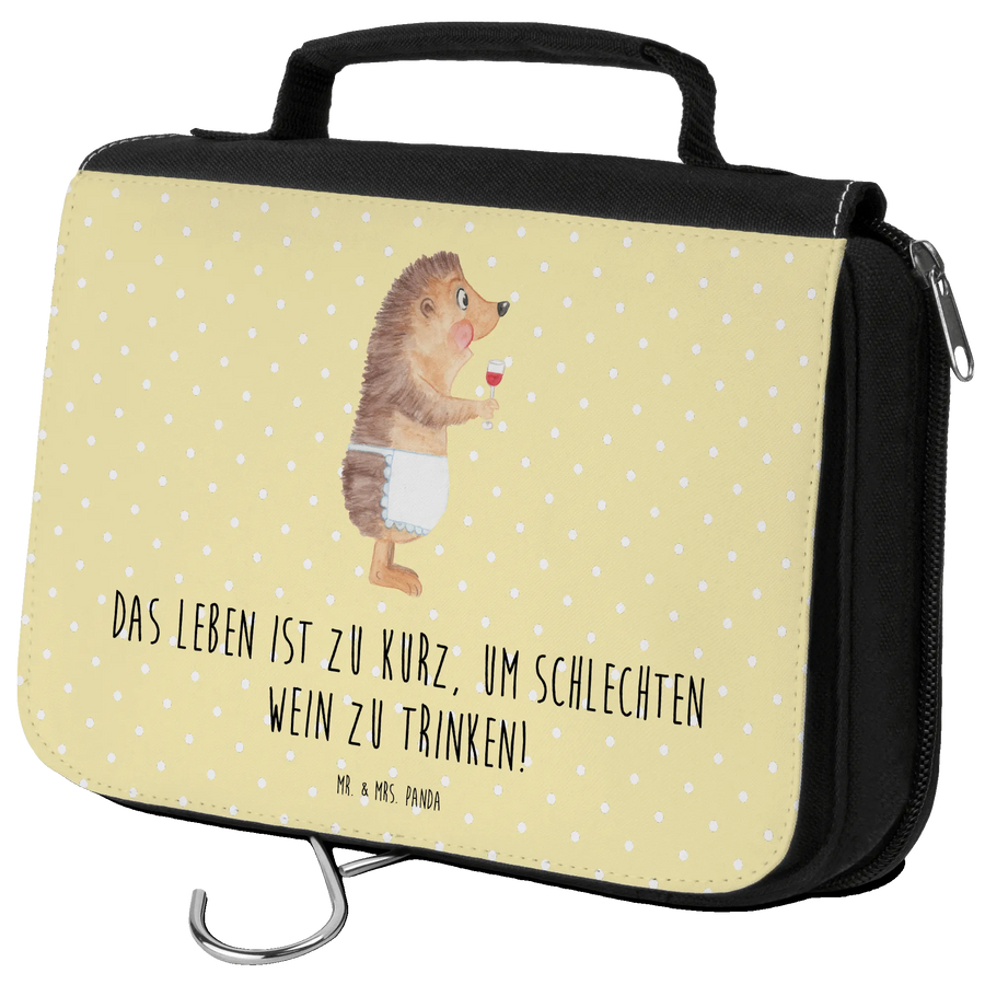 Der Kulturbeutel Igel mit Wein aus der Small World Kollektion von Mr. & Mrs. Panda ist ein ganz besonderes Accessoire für alle Weinliebhaber und Reisen. Mit einem verspielten Design, das einen niedlichen Igel zeigt, der genüsslich aus einem Rotweinglas trinkt, bringt dieser Kulturbeutel Freude und guten Geschmack in Deinen Alltag.