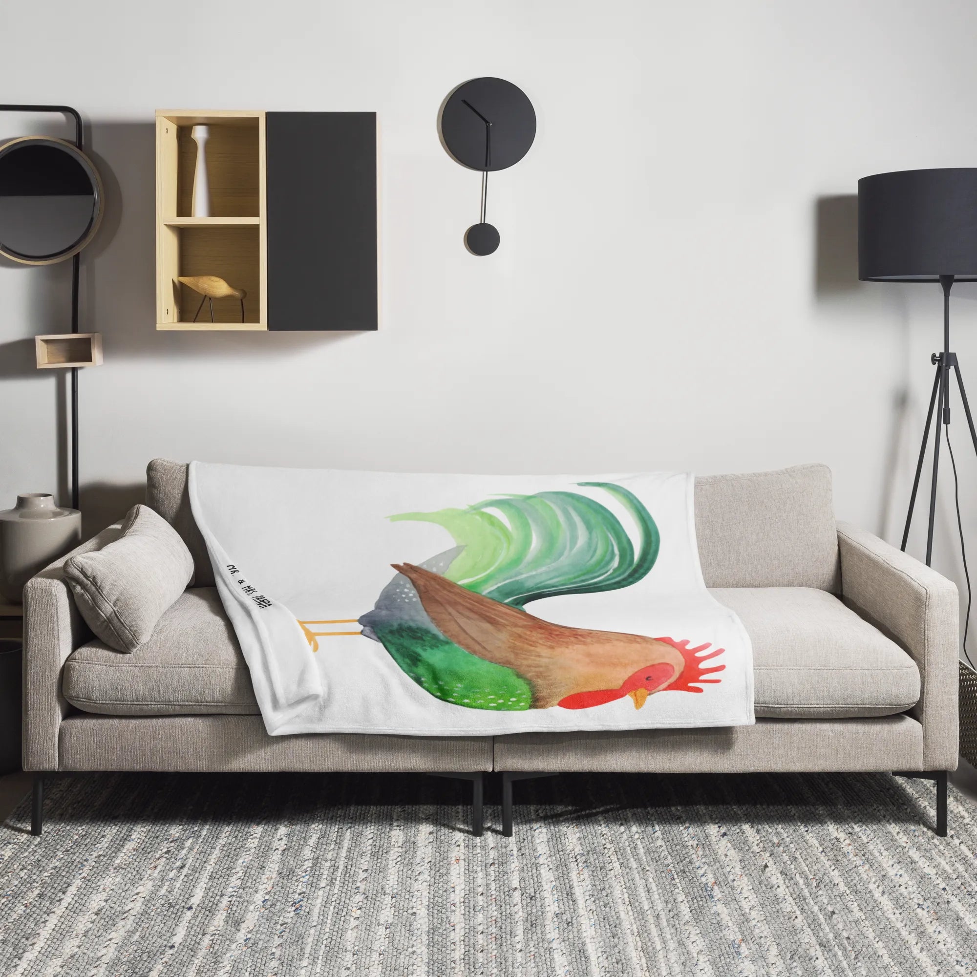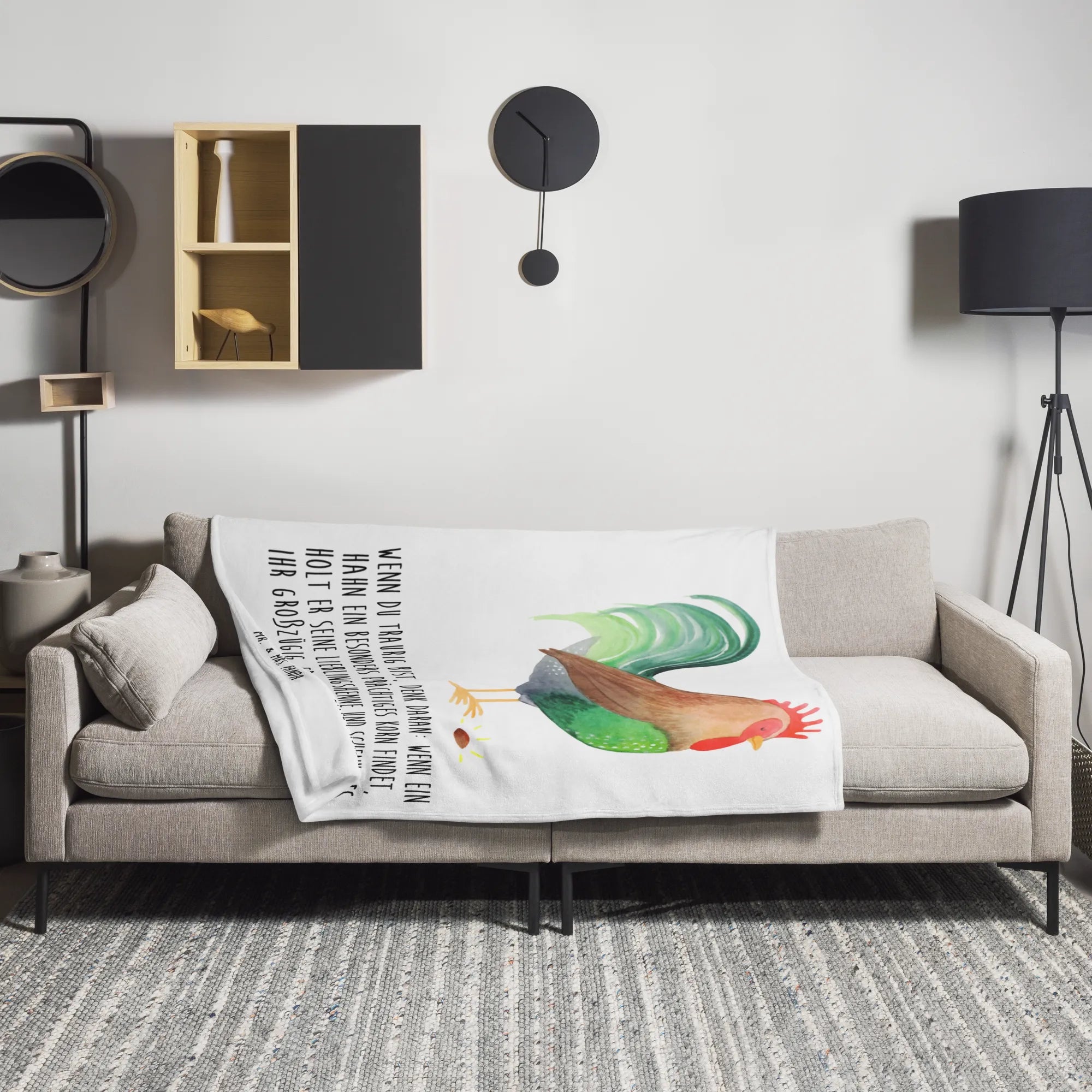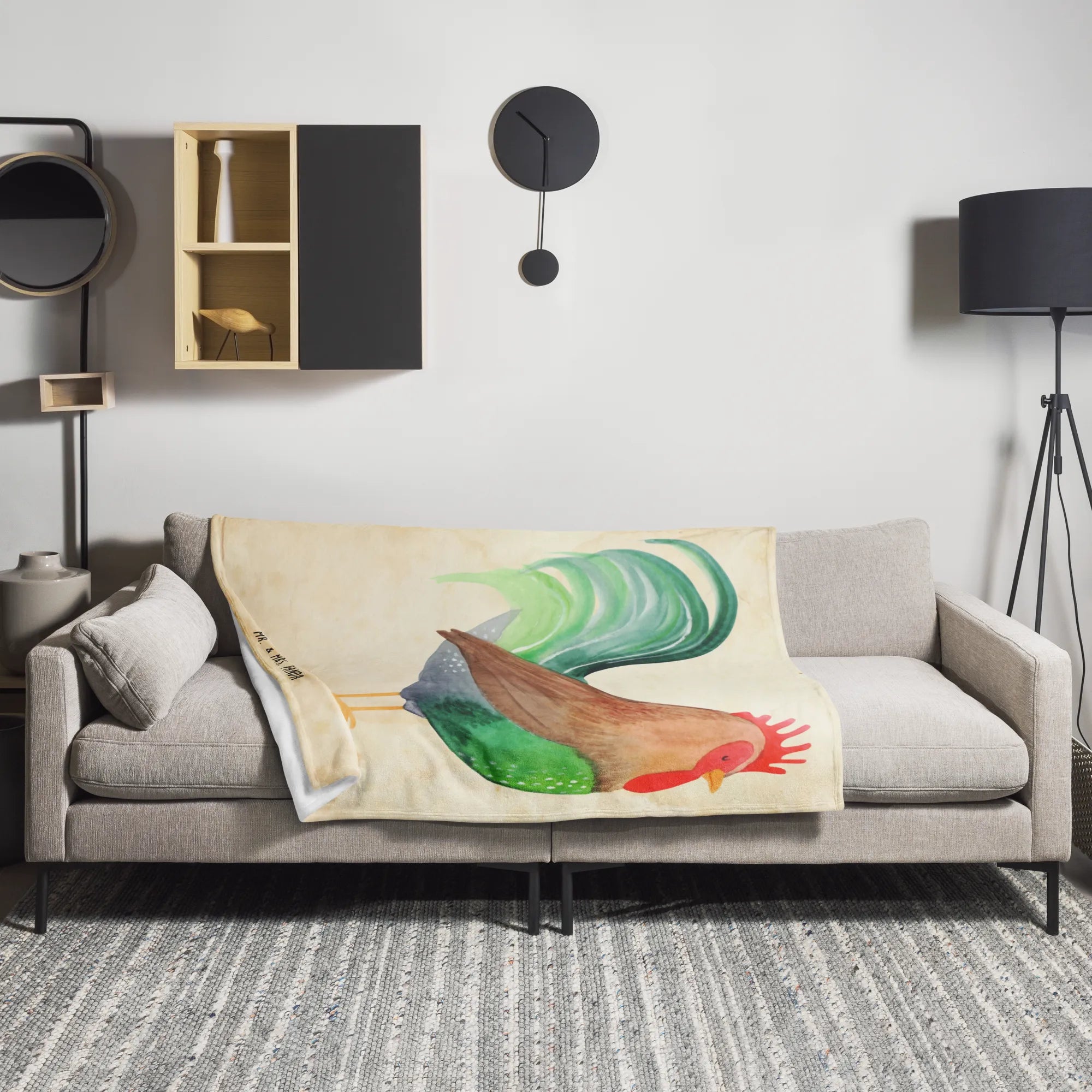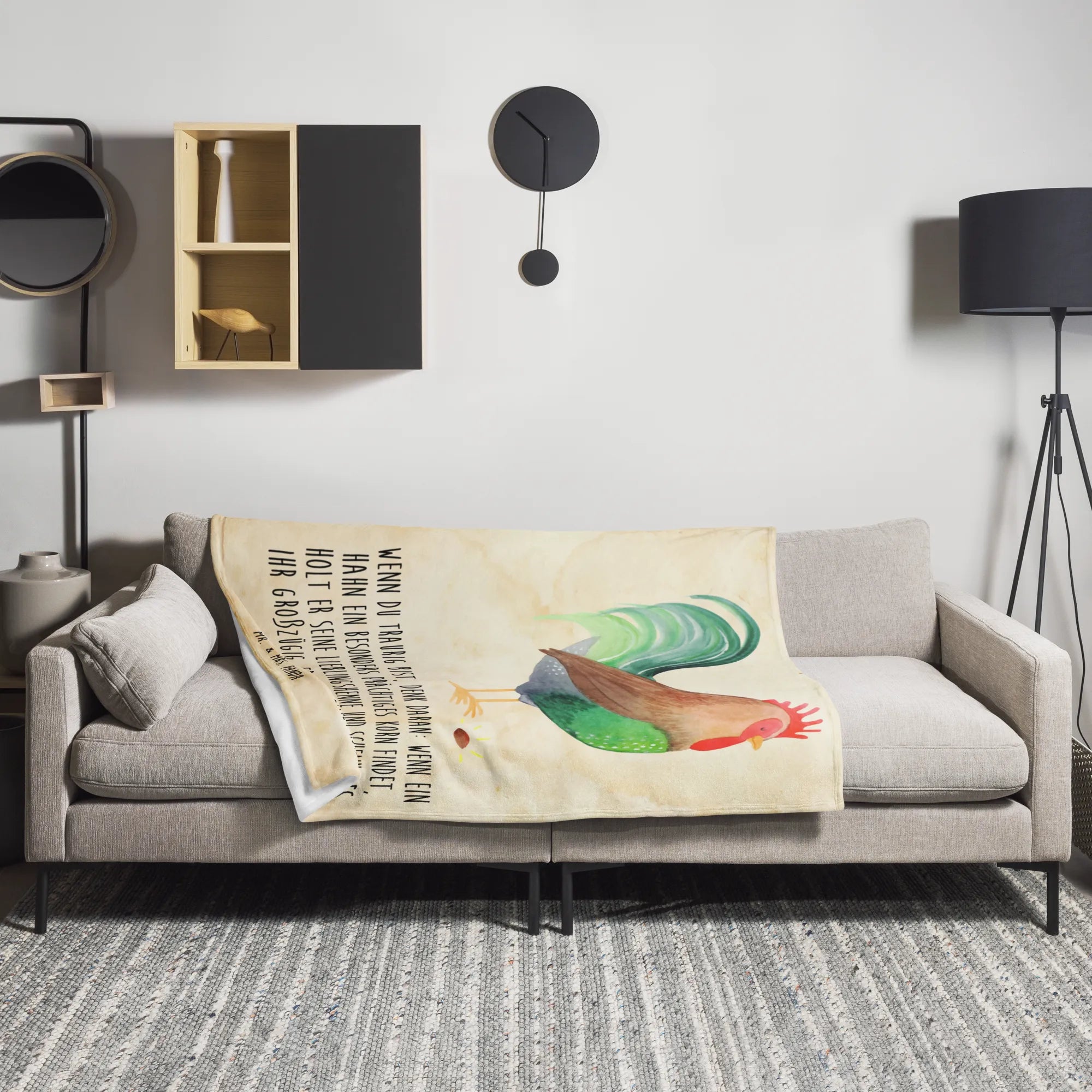 Kuscheldecke Hahn mit Korn - mit Spruch - Vintage