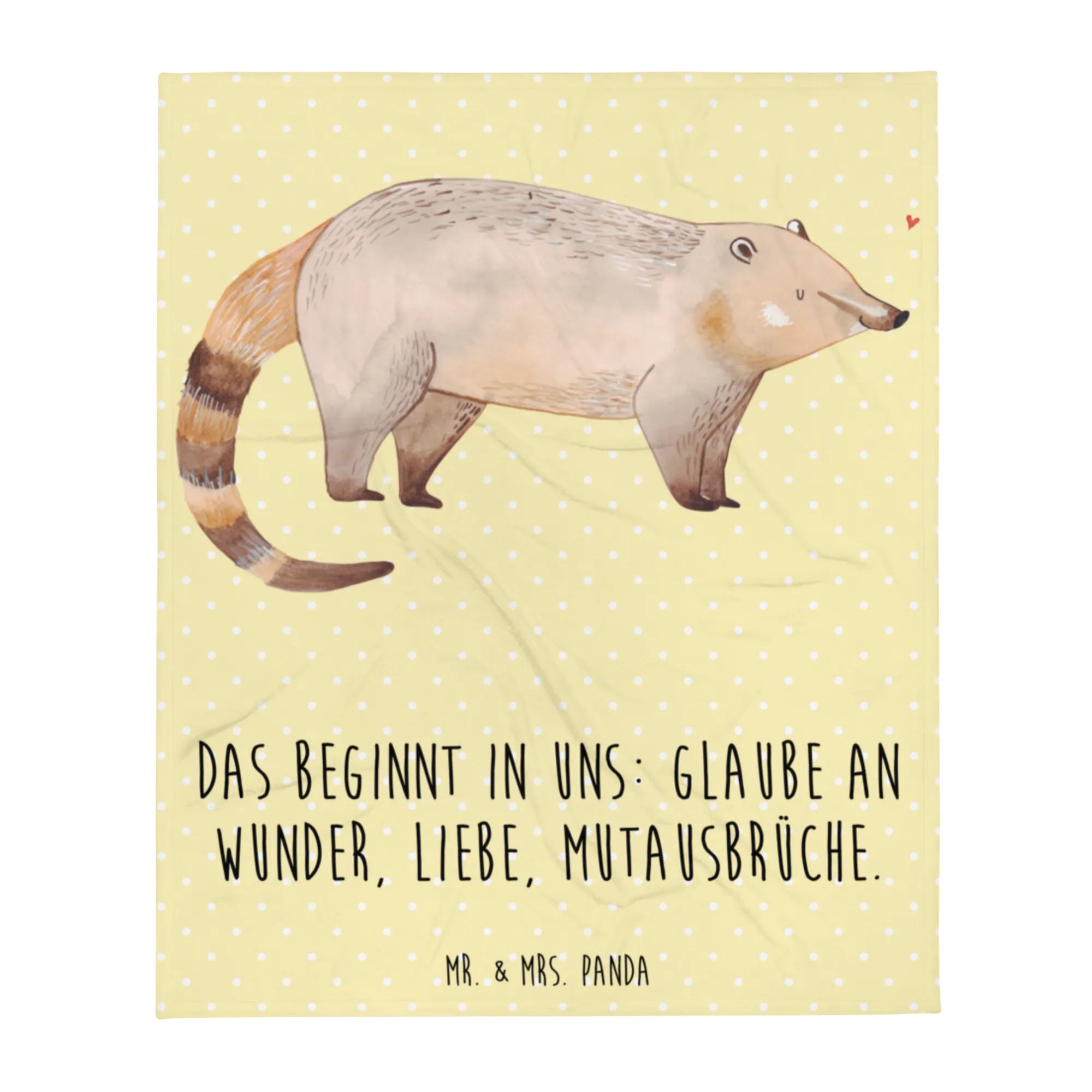 Kuscheldecke Nasenbaer - mit Spruch - Gelb Pastell
