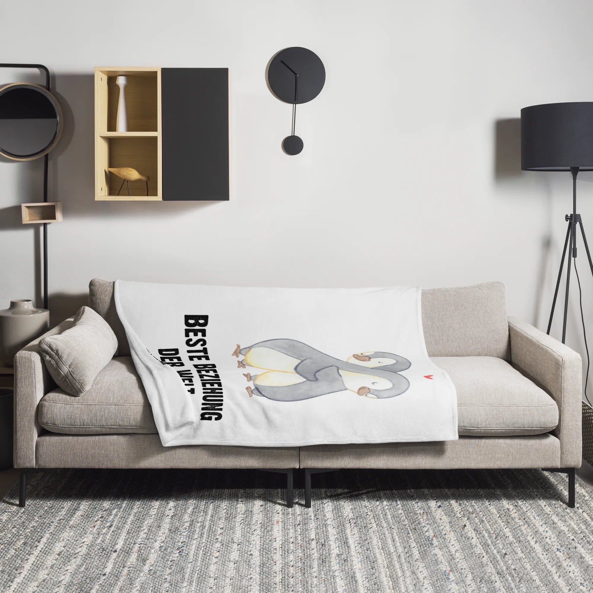 Kuscheldecke Pinguin Beste Beziehung der Welt - Grau Pastell