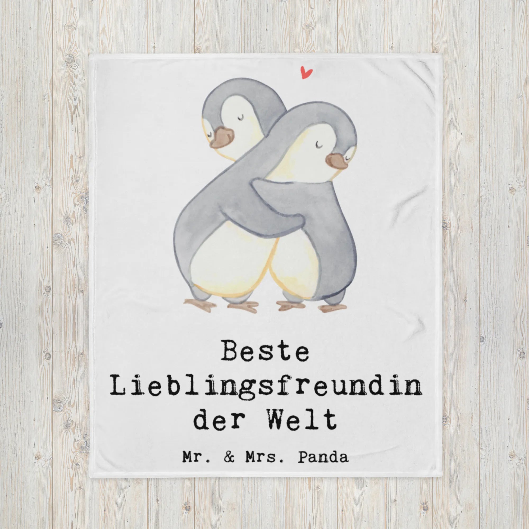 Entdecke die Kuscheldecke 'Pinguin Beste Lieblingsfreundin der Welt' von Mr. & Mrs. Panda, ein perfektes Geschenk für Deine beste Freundin, Partnerin oder Lieblingsmensch! Diese hochwertige und wunderschöne Kuscheldecke aus ultrakuscheliger Kunstfaser ist nicht nur super weich und angenehm auf der Haut, sondern bringt mit ihrem niedlichen Motiv, zwei Pinguinen, die sich im Arm halten, auch ein Lächeln ins Gesicht. Ideal für kuschelige Nächte auf dem Sofa oder als täglicher Begleiter im Bett, wird sie schnell zum Lieblingsteil in jedem Haushalt. ⭐️