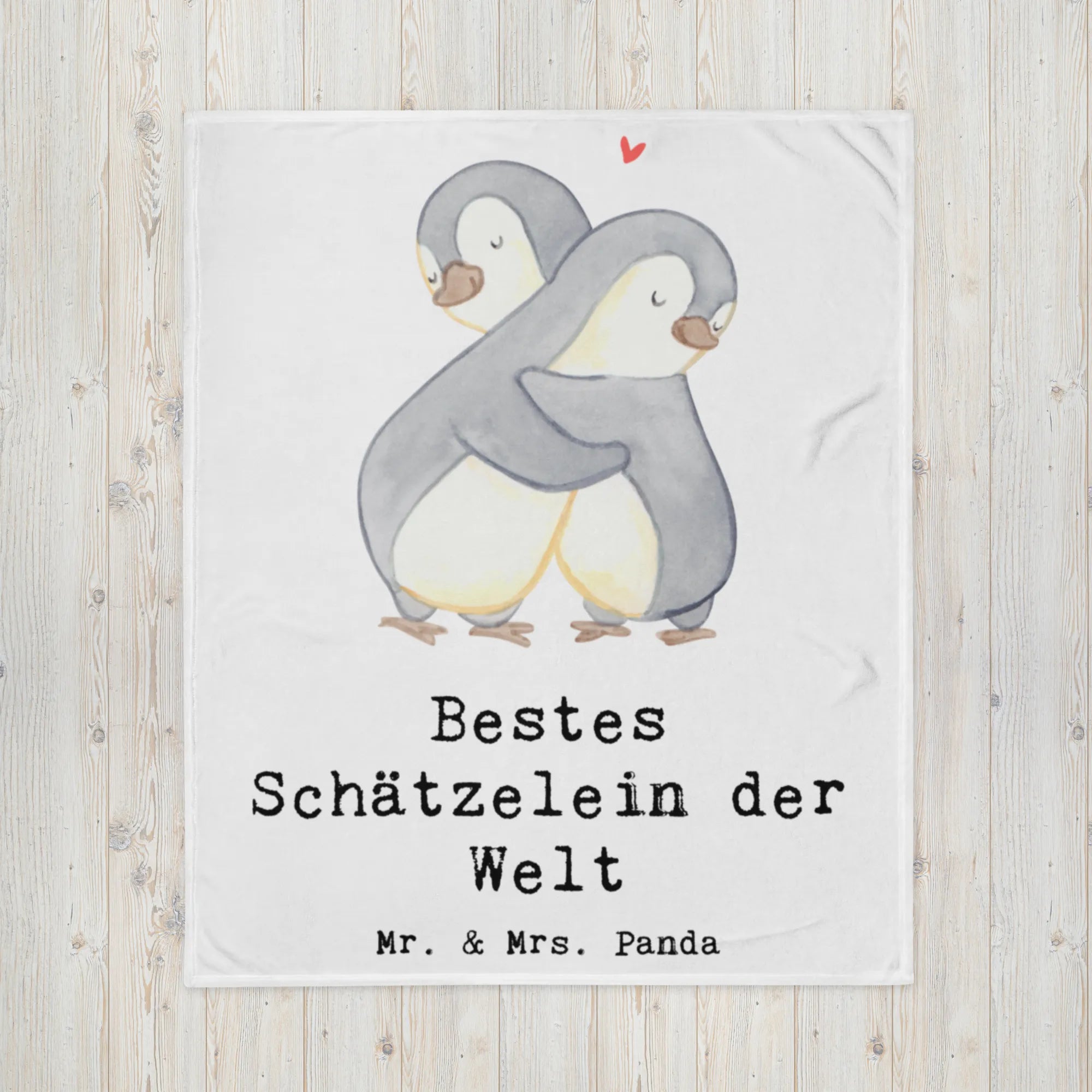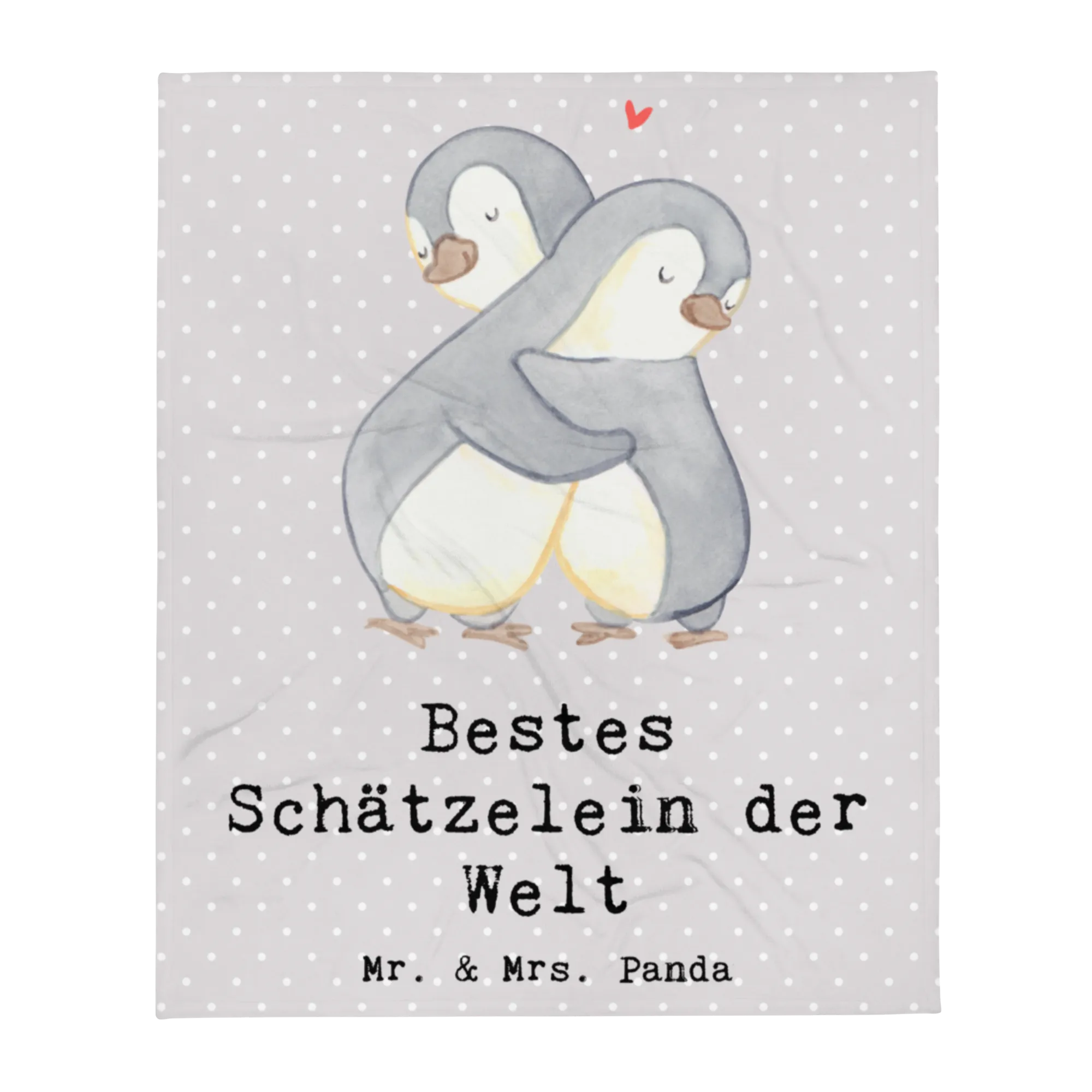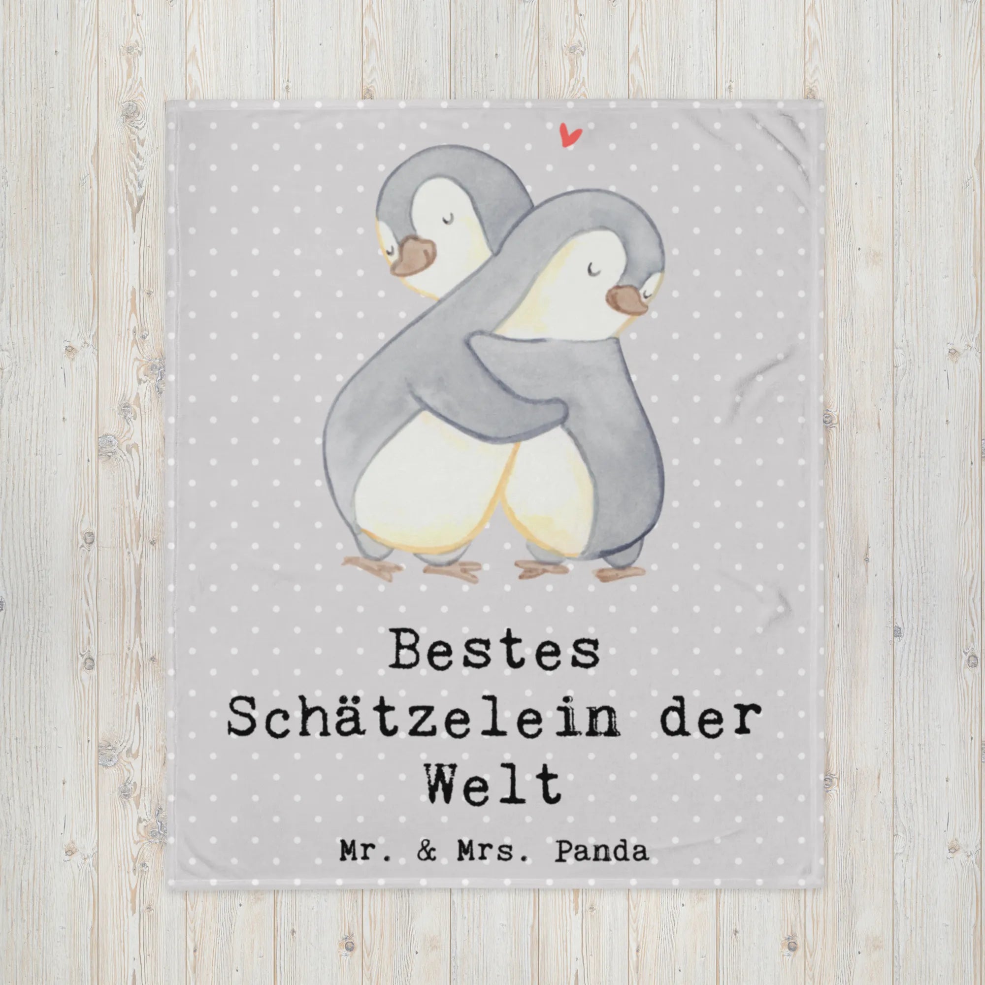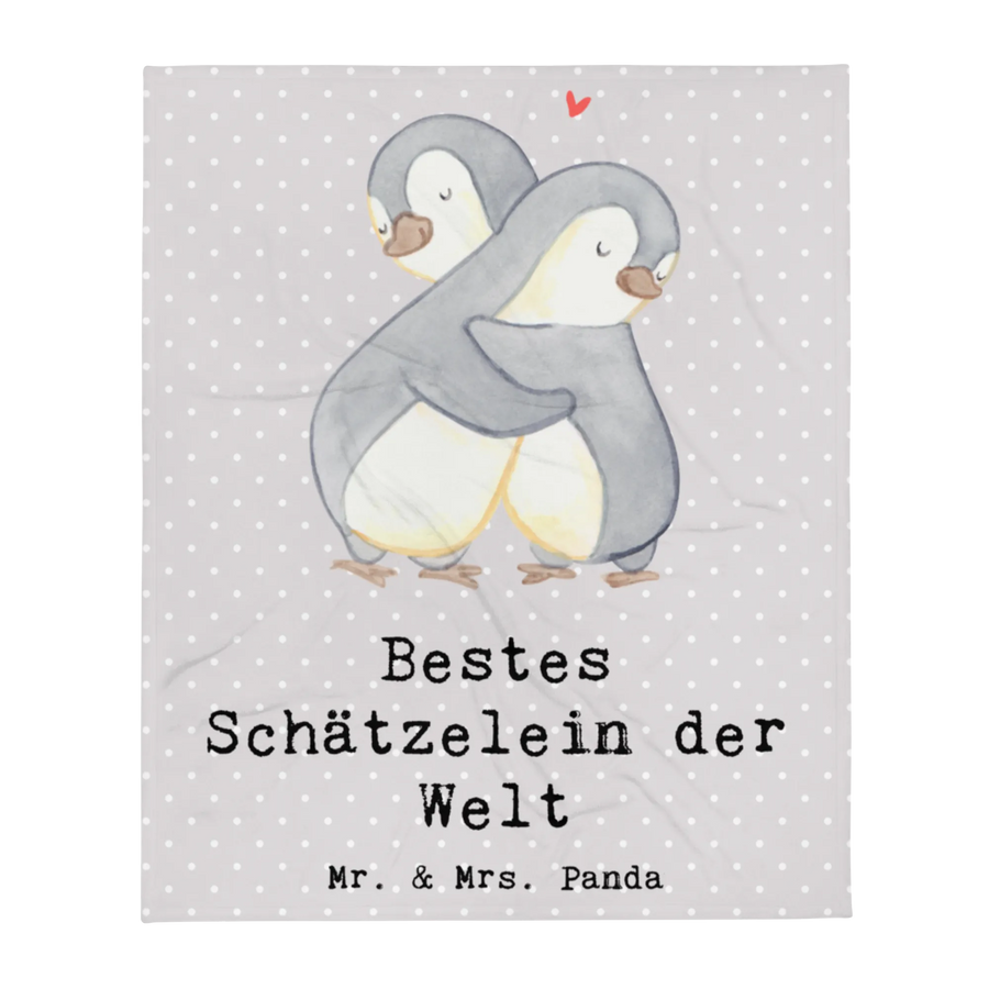 Kuscheldecke Pinguin Bestes Schätzelein der Welt - Grau Pastell