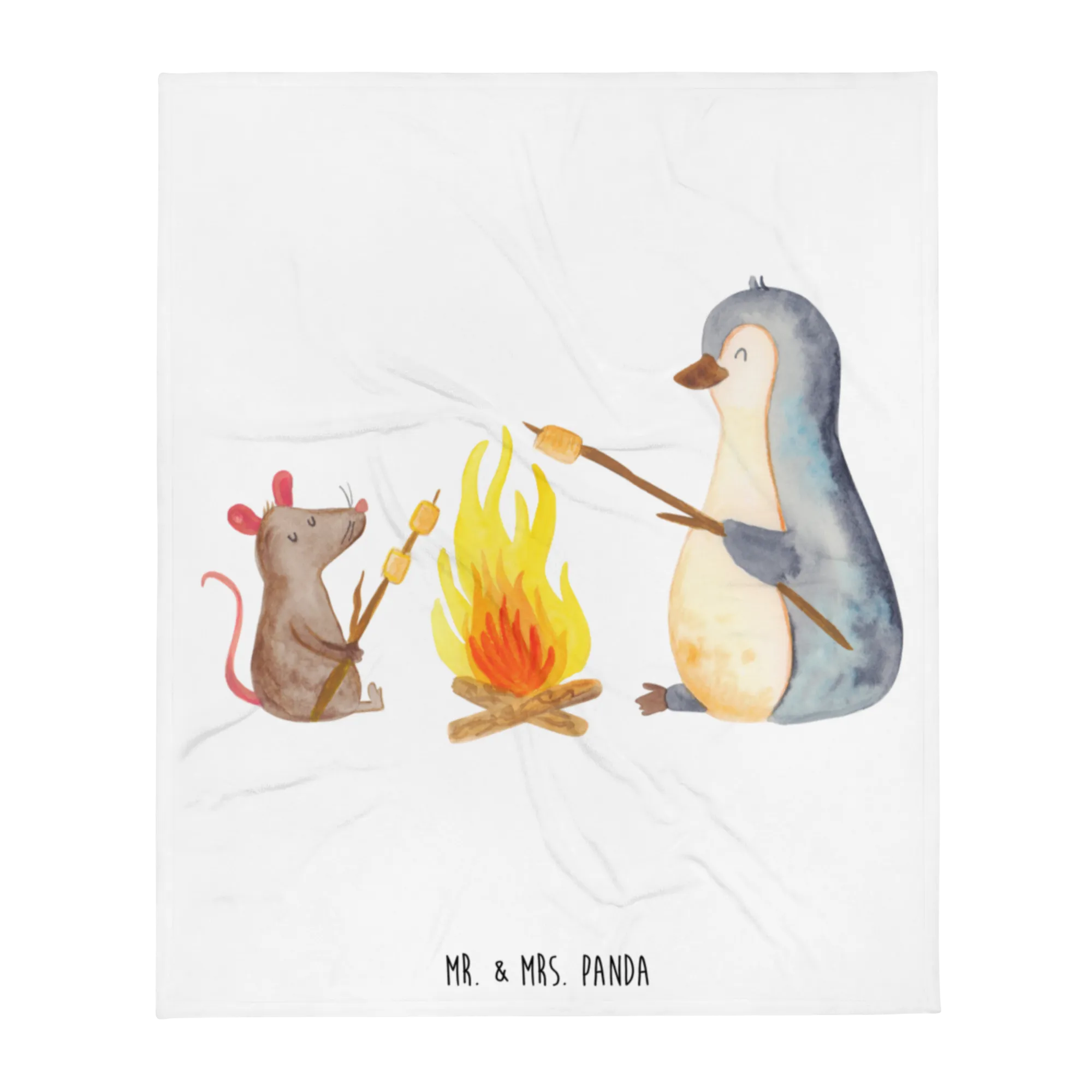 Decke Pinguin Lagerfeuer - mit Spruch - Weiß