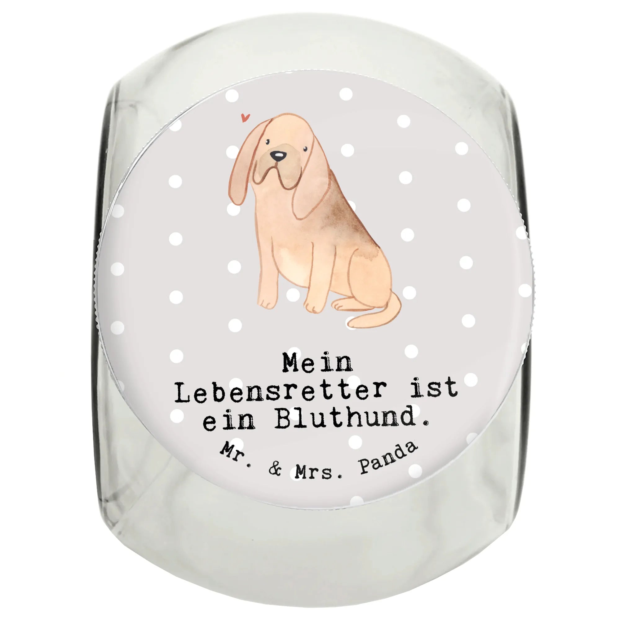 Entdecke unser zauberhaftes Leckerli Glas mit dem liebevollen Motiv "Mein Lebensretter ist ein Bluthund" aus der einzigartigen Hunderasse Kollektion von Mr. & Mrs. Panda. Dieses wunderschöne Vorratsglas ist nicht nur ein praktisches Accessoire für alle Hundebesitzer, sondern auch ein ideales Geschenk für Tierfreunde und Hundefans. Verwöhne deinen treuen Begleiter mit seinen Lieblingsleckerlis – sei es für den Welpen oder den ausgewachsenen Hund.