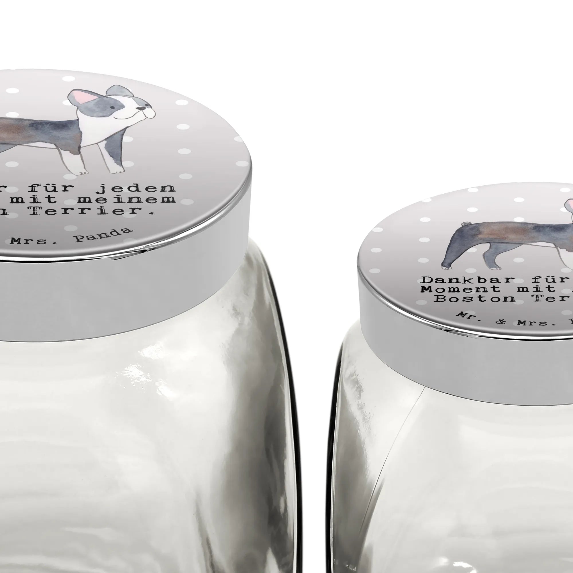 Das Wunderschöne Leckerli Glas von Mr. & Mrs. Panda ist das perfekte Geschenk für Hundebesitzer, die ihren Boston Terrier lieben. Mit dem liebevollen Motiv "Dankbar für jeden Moment mit meinem Boston Terrier" bringt dieses Glas nicht nur Freude, sondern auch eine wunderschöne Dekoration für dein Zuhause.