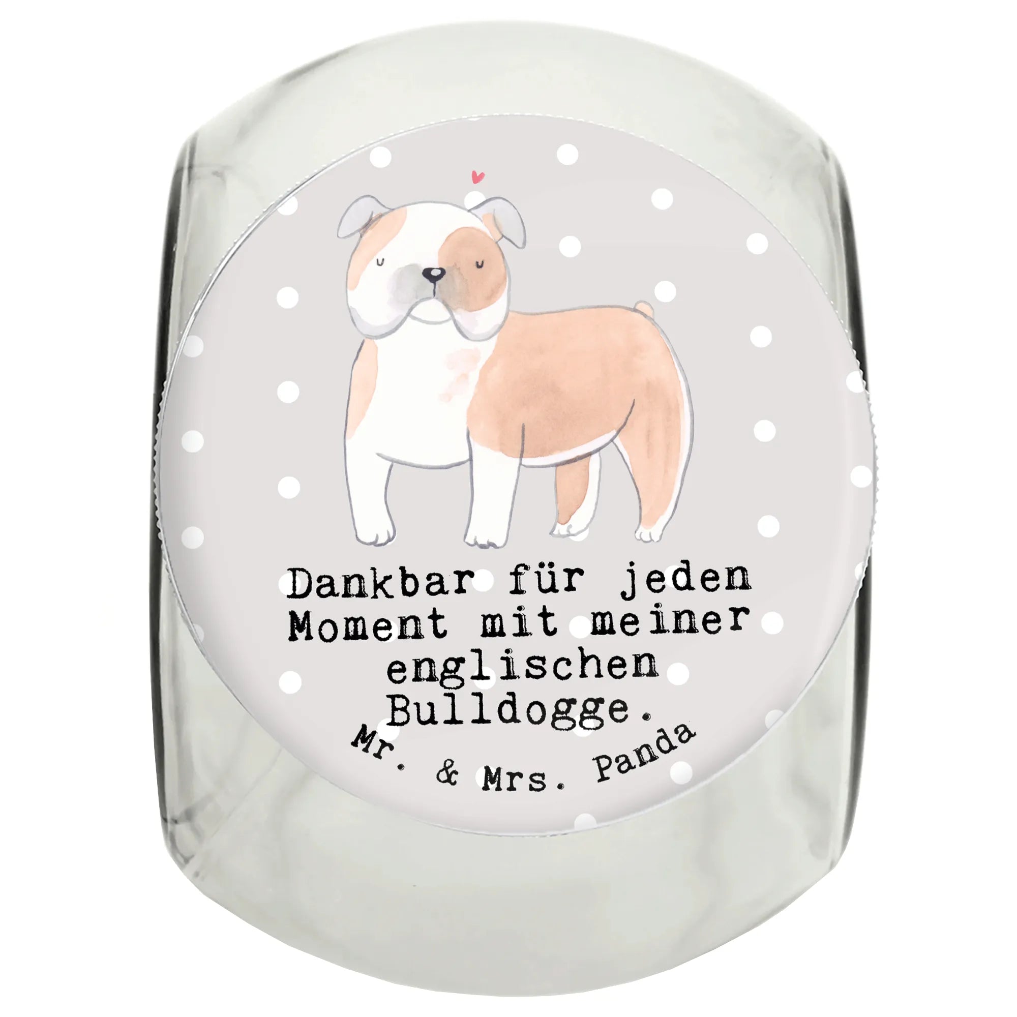 Das Wunderschöne Leckerli Glas von Mr. & Mrs. Panda mit dem Motiv der Englischen Bulldogge ist das perfekte Geschenk für alle Hundefreunde und Hundebesitzer! Das liebevoll gestaltete Glas, das mit dem Slogan "Dankbar für jeden Moment mit meiner englischen Bulldogge" versehen ist, bringt nicht nur Freude, sondern ist auch äußerst praktisch.