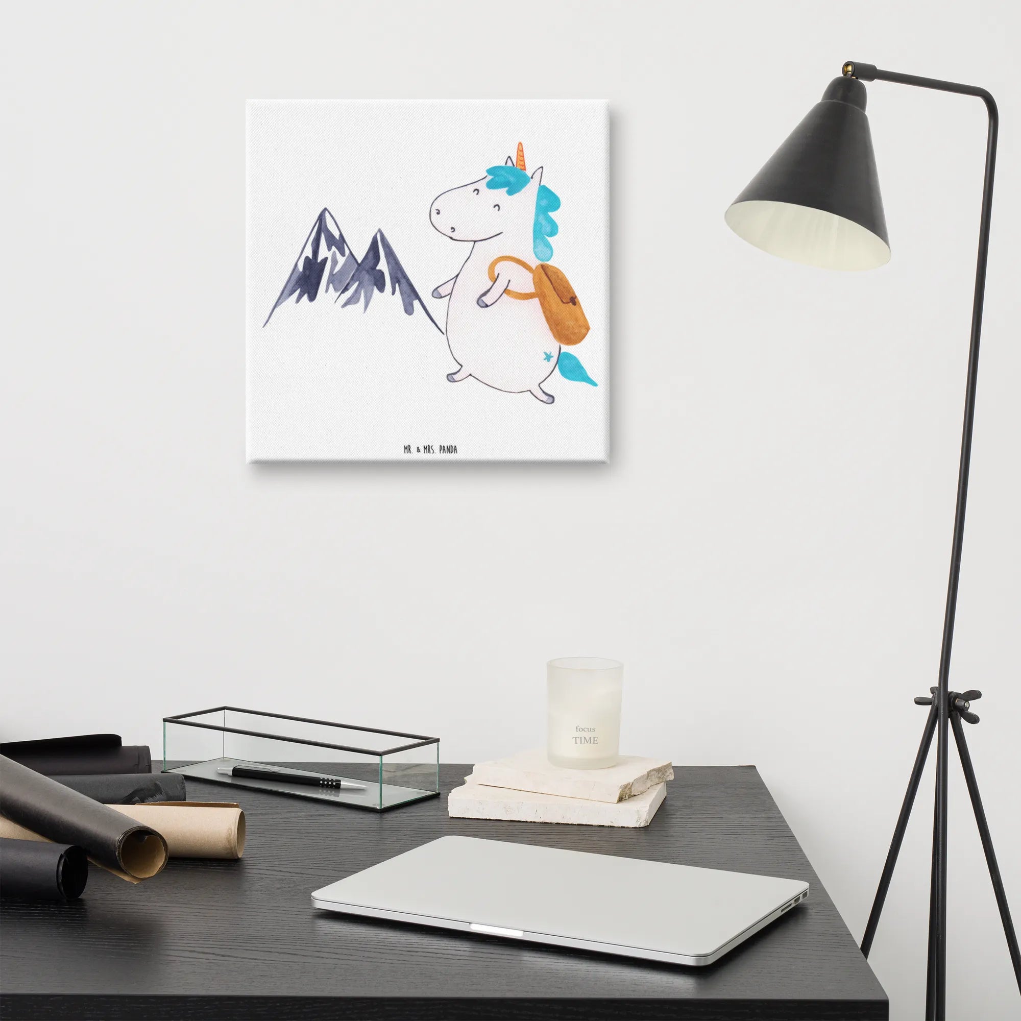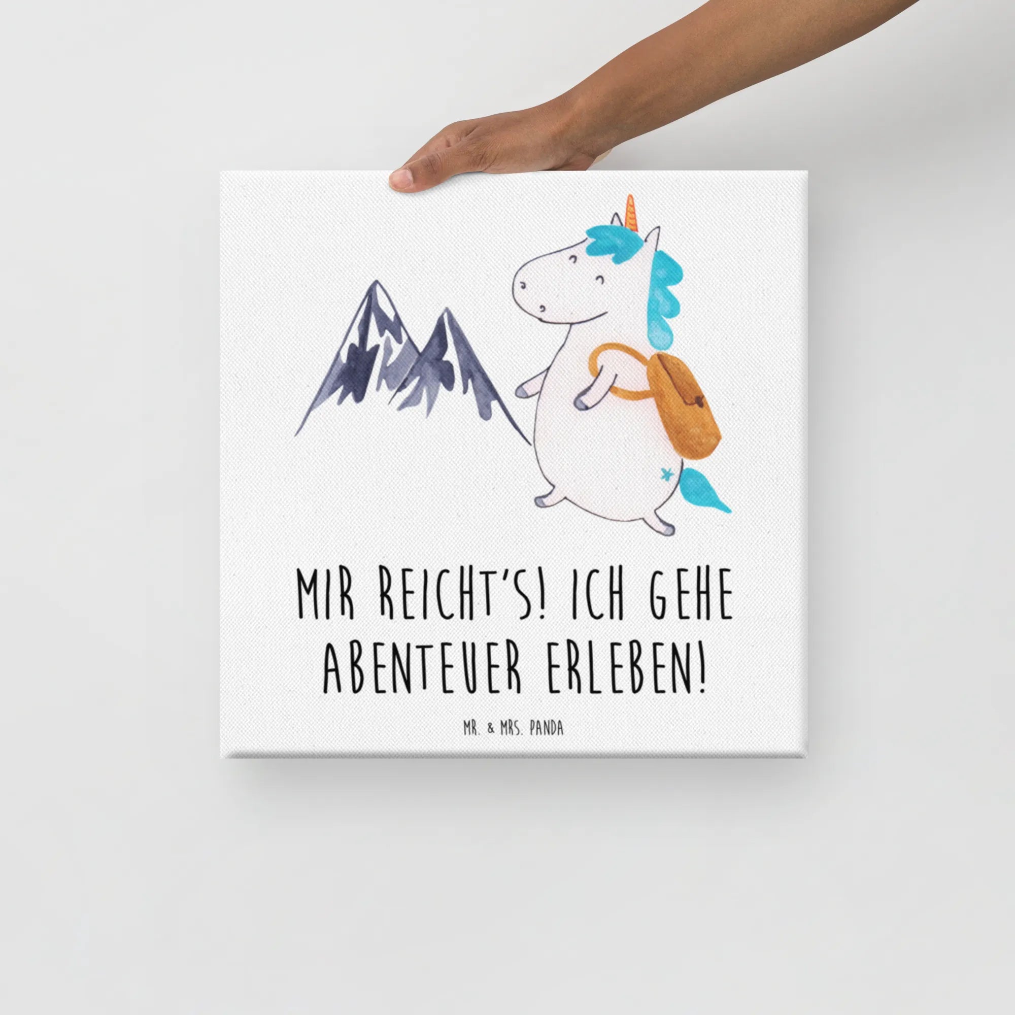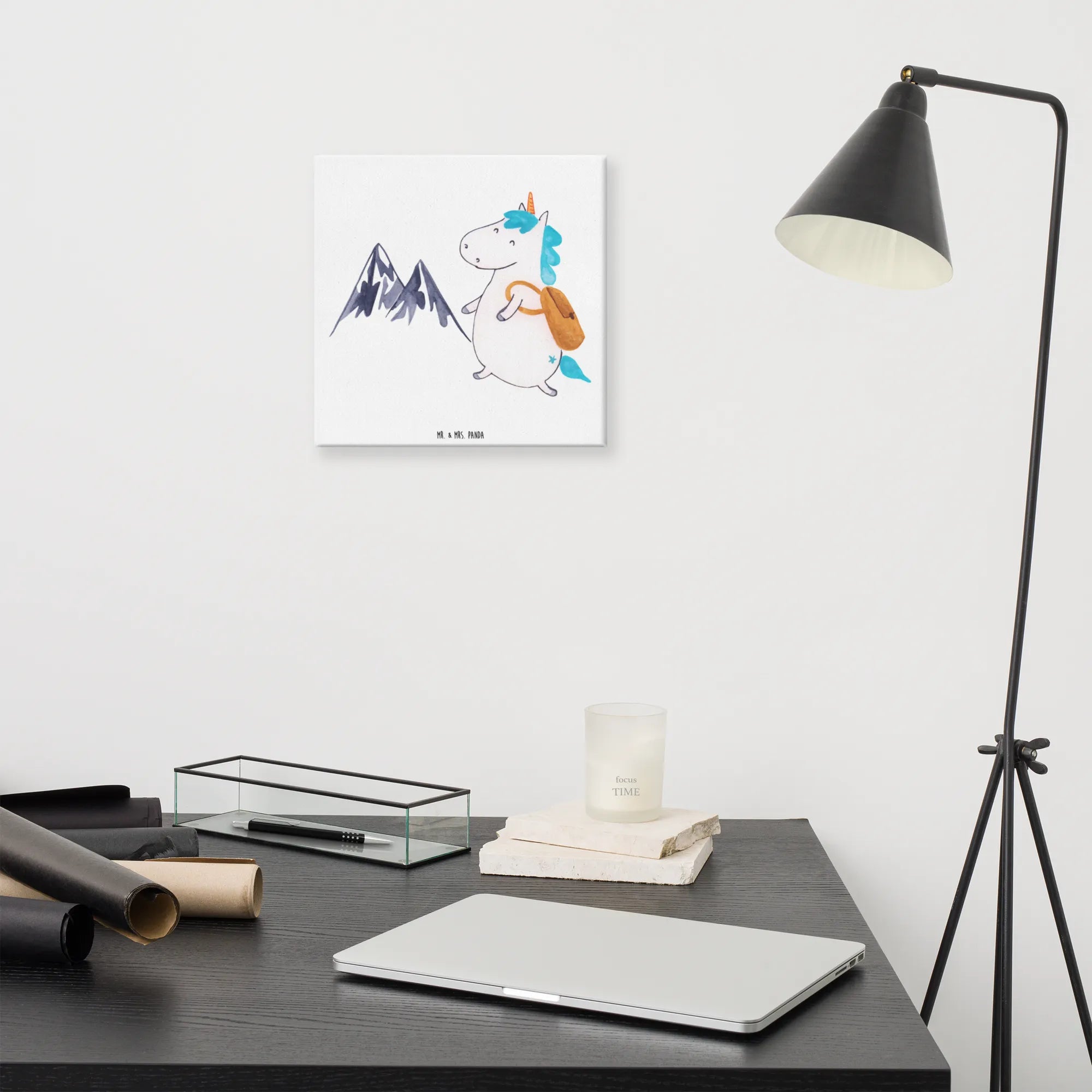 Leinwand Bild Einhorn Bergsteiger - 40 x 40 cm - mit Spruch
