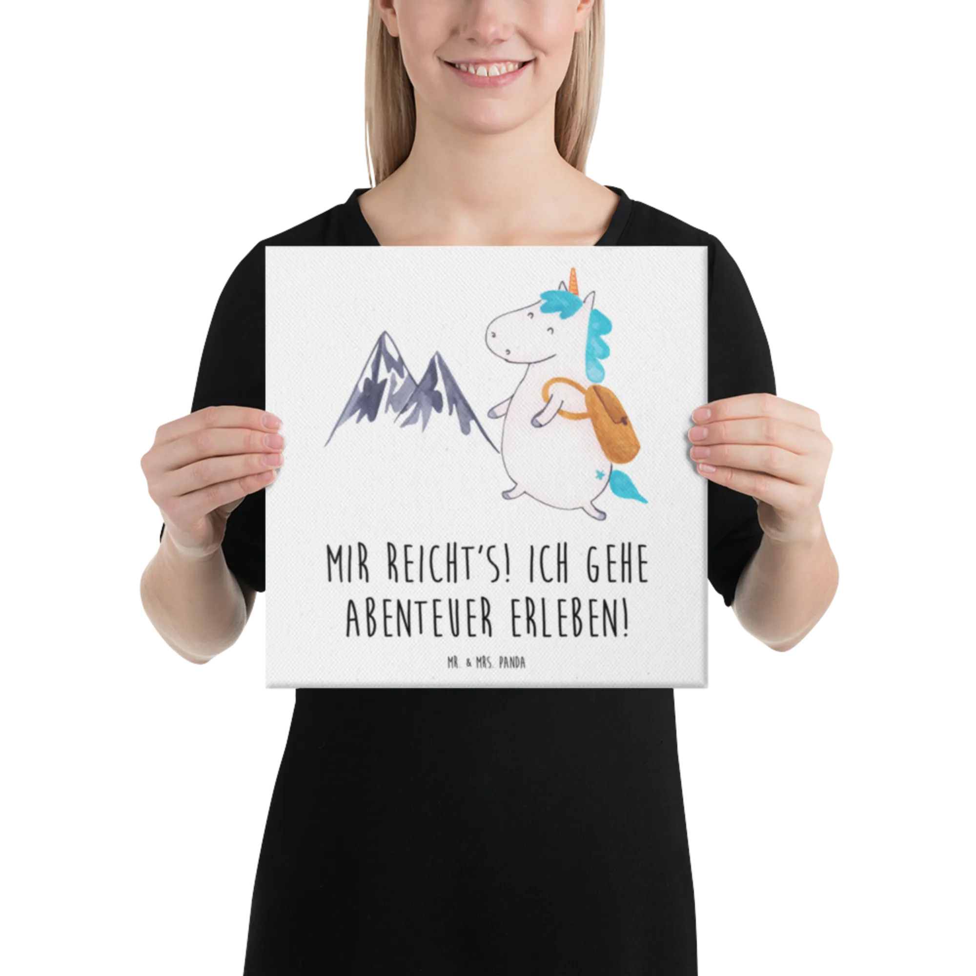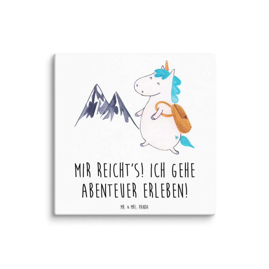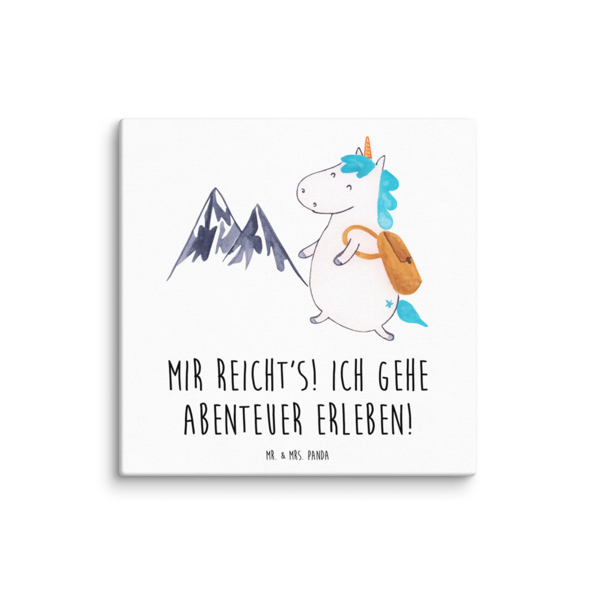Leinwand Bild Einhorn Bergsteiger - 40 x 40 cm - mit Spruch