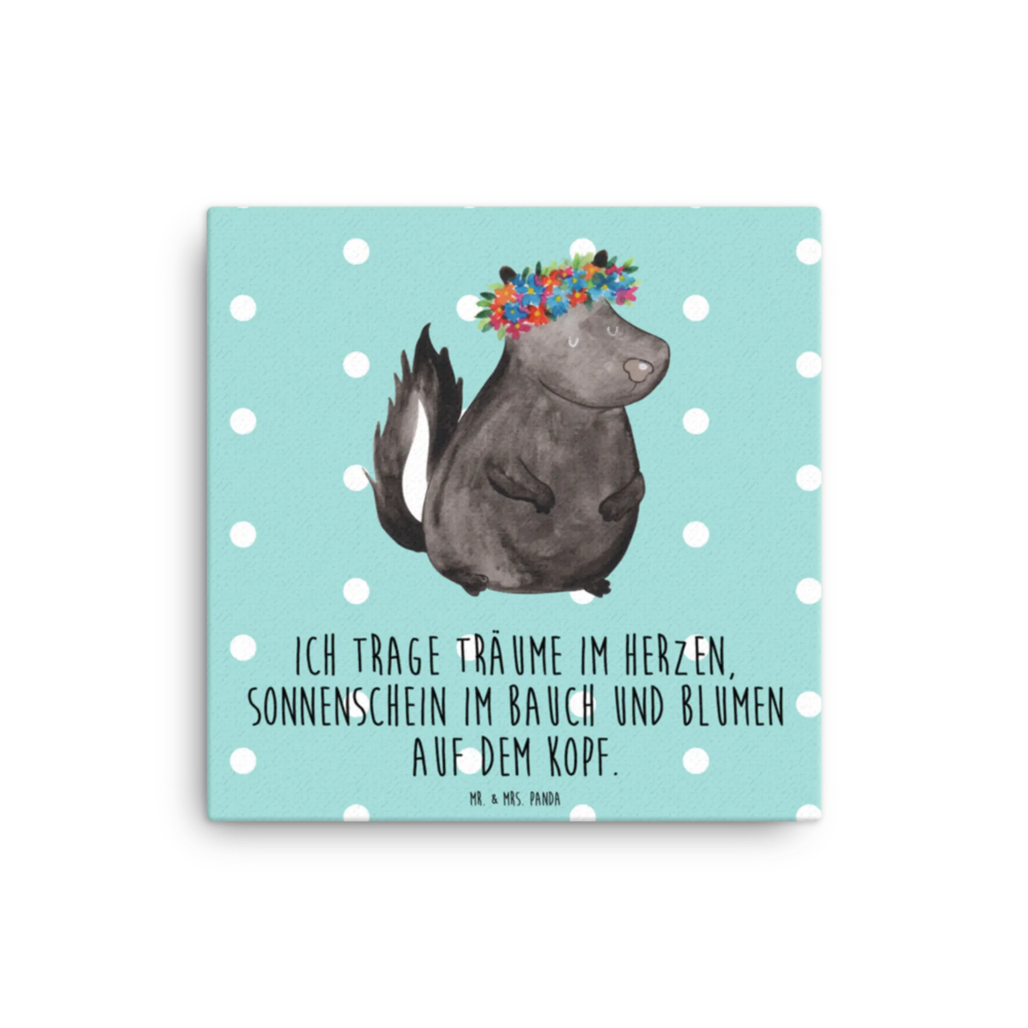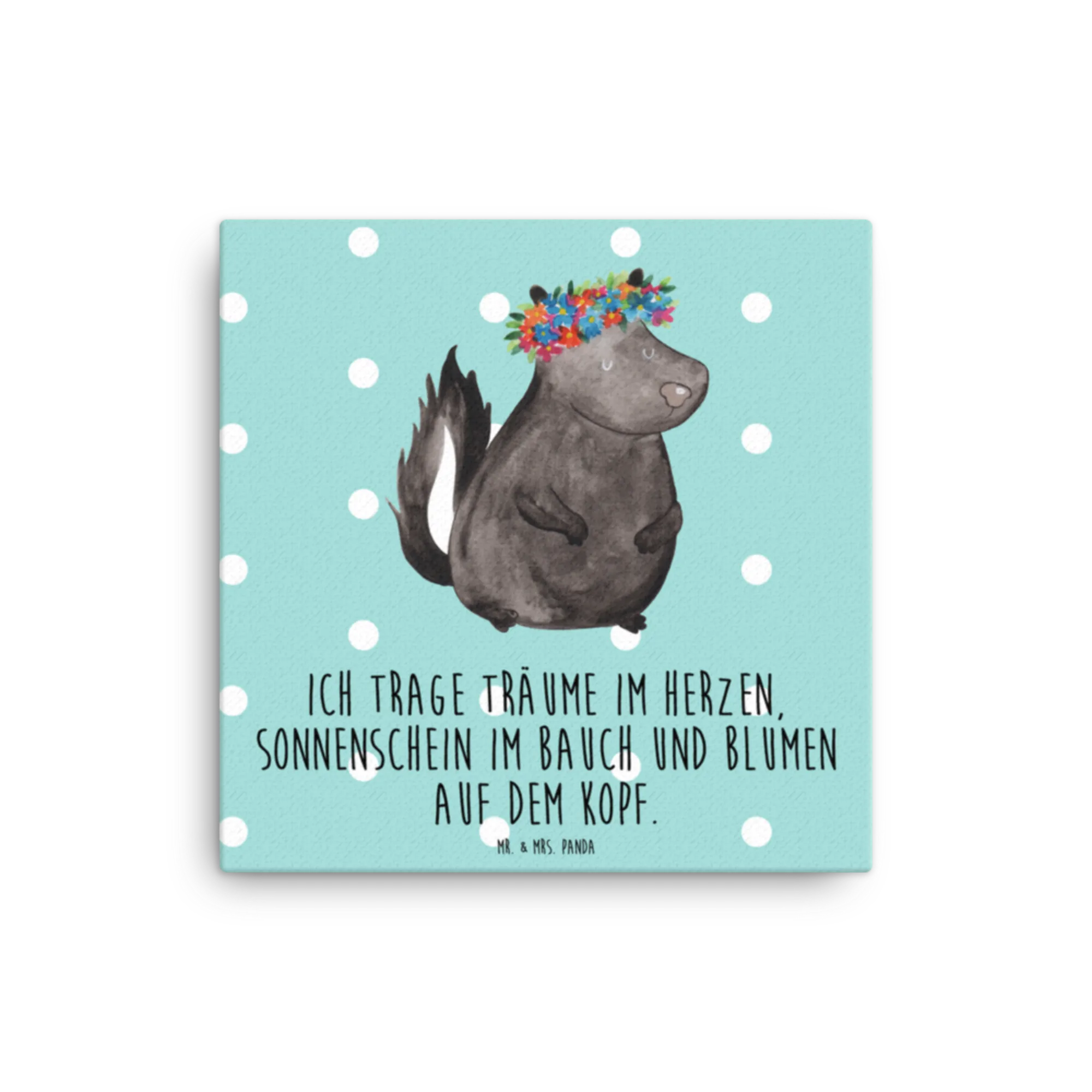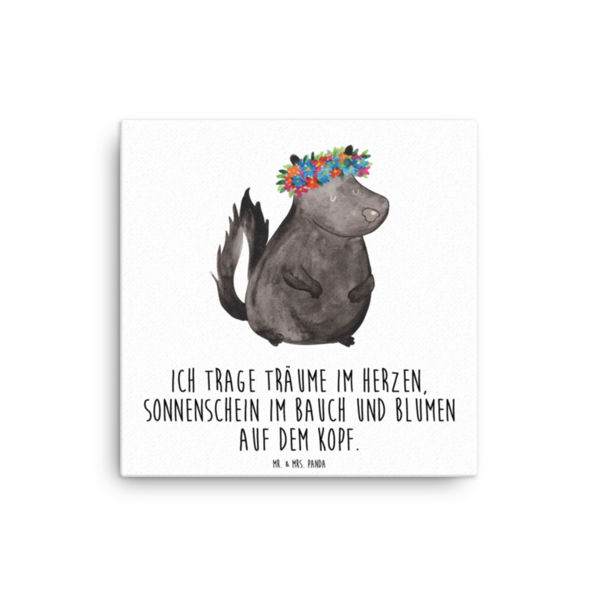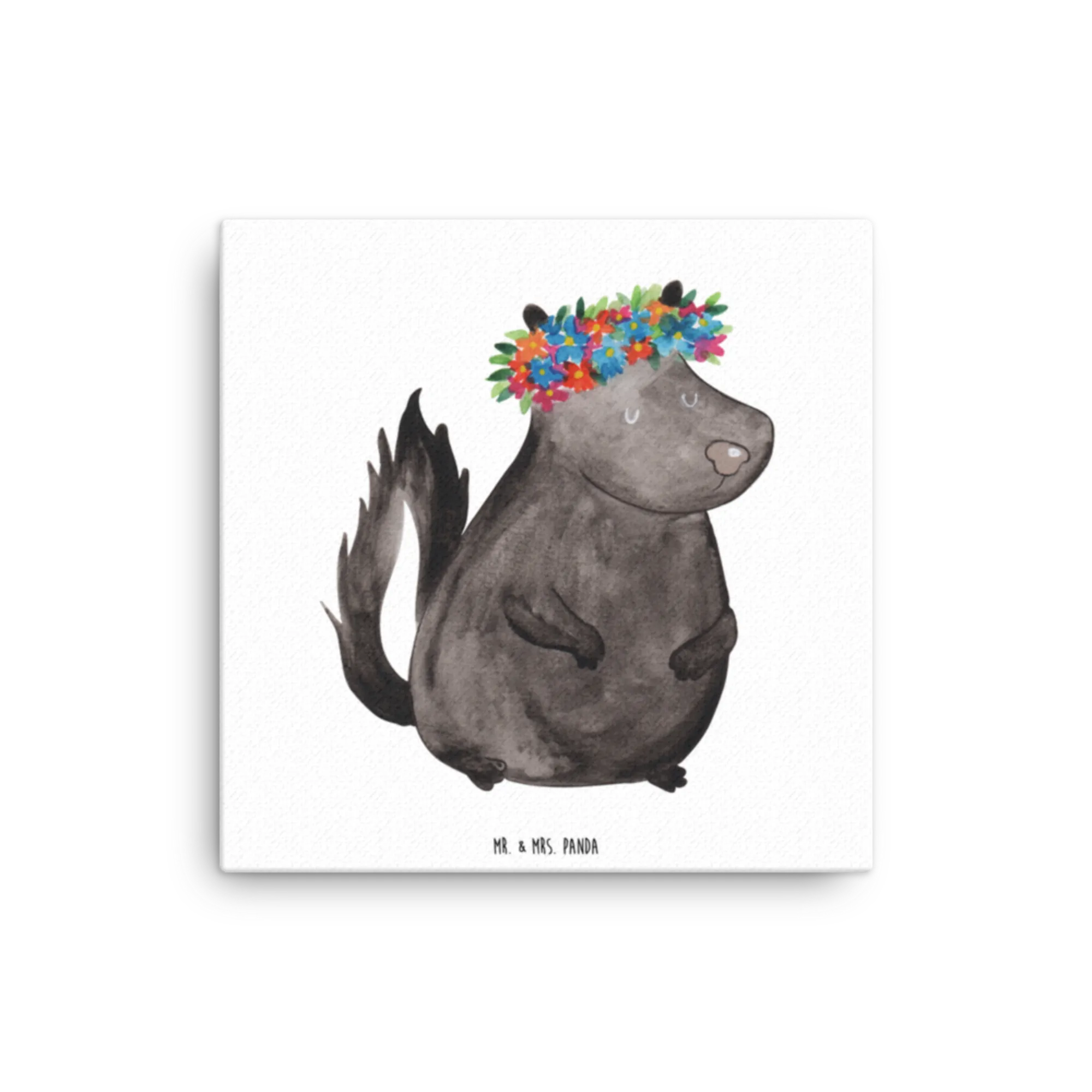 Leinwand Bild Stinktier Blumenmaedchen - 40 x 40 cm - mit Spruch - Weiß