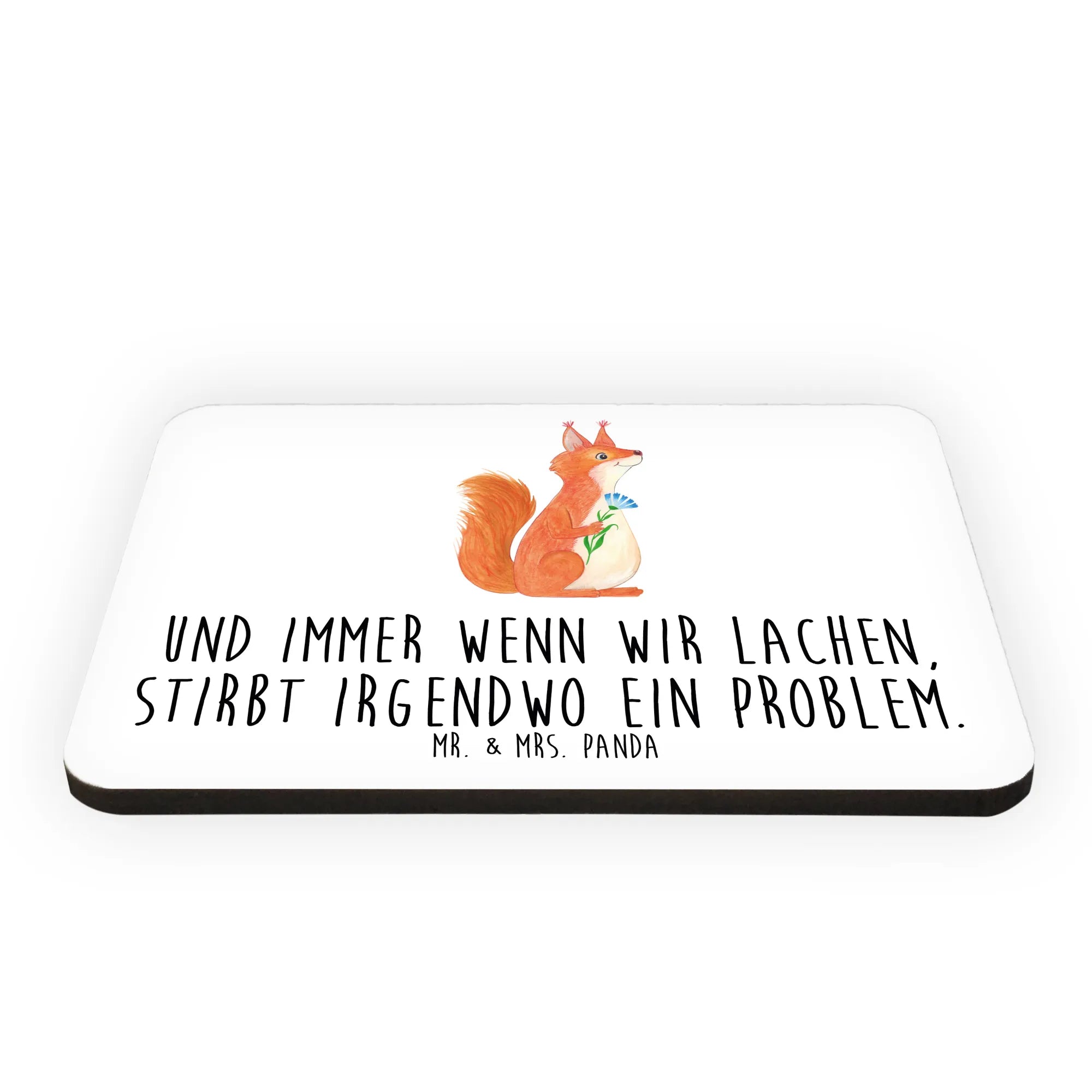 Der Kühlschrankmagnet mit dem niedlichen Eichhörnchen und einer Blume aus der Kollektion Small World von Mr. & Mrs. Panda ist das perfekte Geschenk für alle Tierliebhaber und Freunde positiver Sprüche.