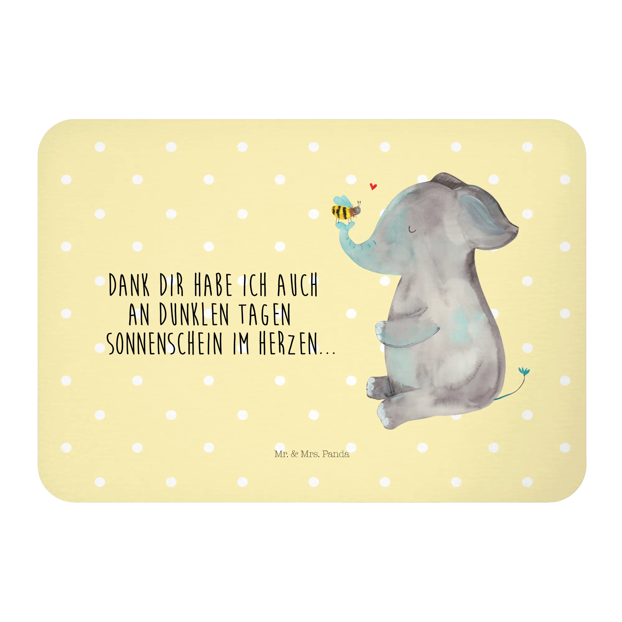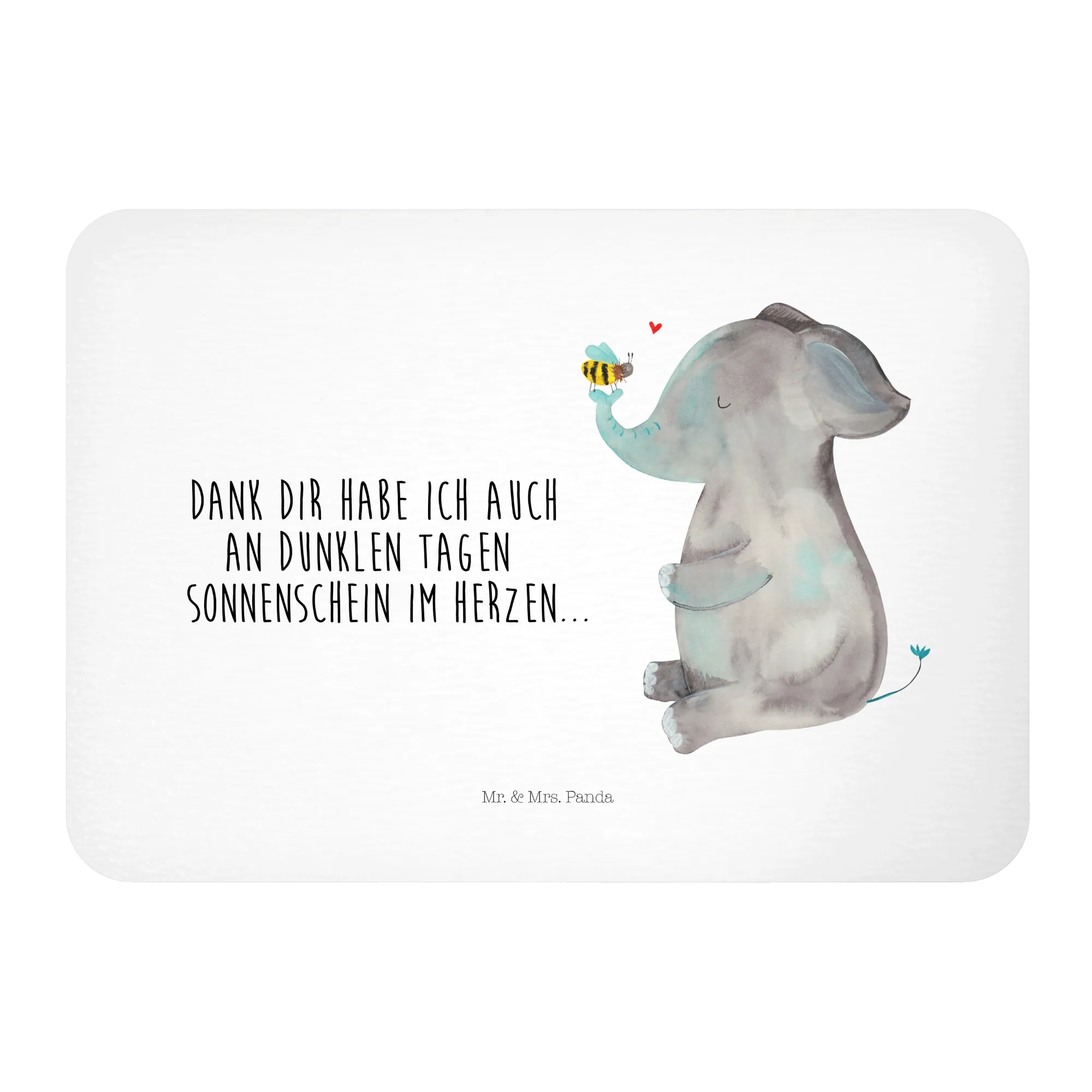 Der Elefant, ein Symbol für Stärke und Schutz, sowie die Biene, die für Fleiß und Zusammenarbeit steht, vereinen sich in diesem zauberhaften Design und senden eine liebevolle Botschaft: "Dank dir habe ich auch an dunklen Tagen Sonnenschein im Herzen...".