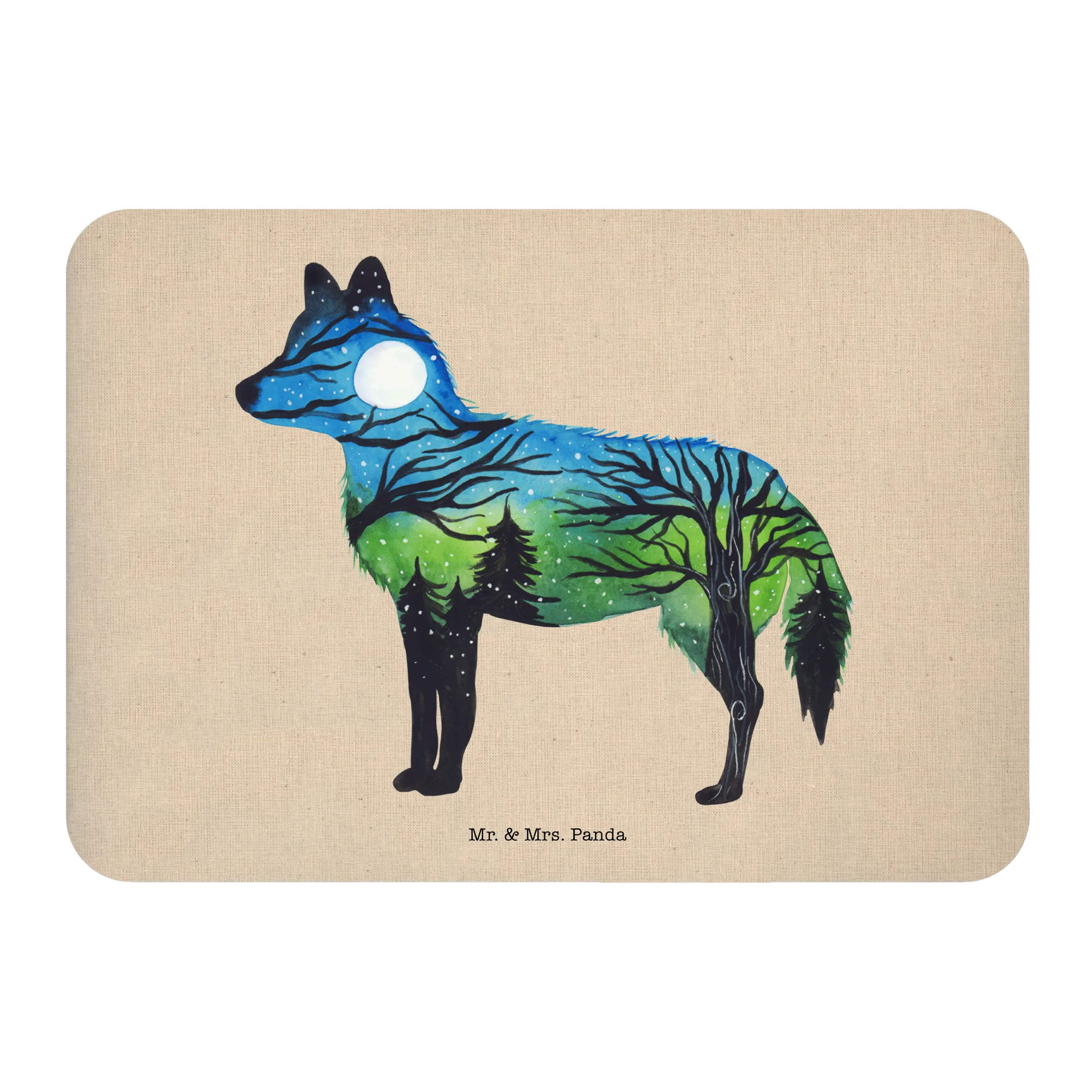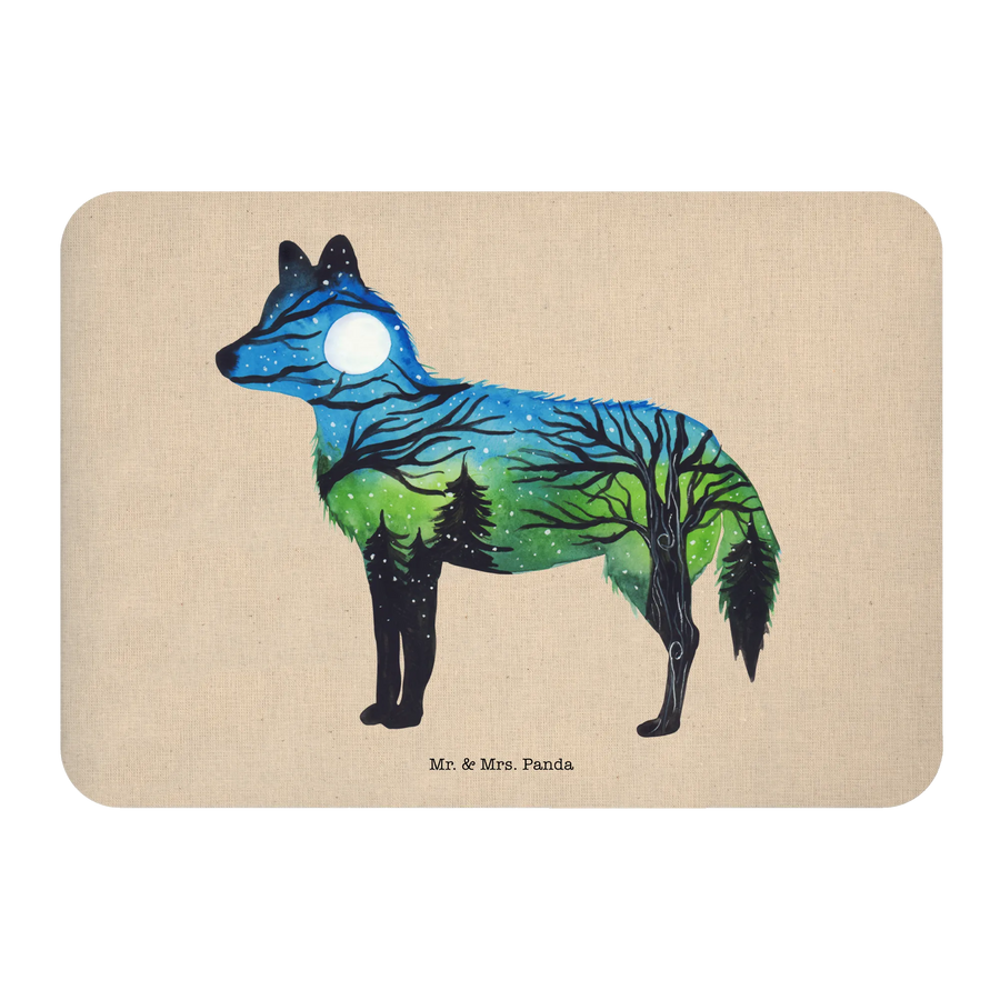 Auf ihm wird ein wunderschön gezeichneter Fuchs dargestellt, dessen Körper mit einer atemberaubenden Aquarell-Landschaft gefüllt ist. Die obere Hälfte präsentiert einen nächtlichen Himmel mit strahlenden Sternen und einem großen Vollmond, während die untere Hälfte in sanften Grüntönen eine blühende Wiese oder Lichtung zeigt.
