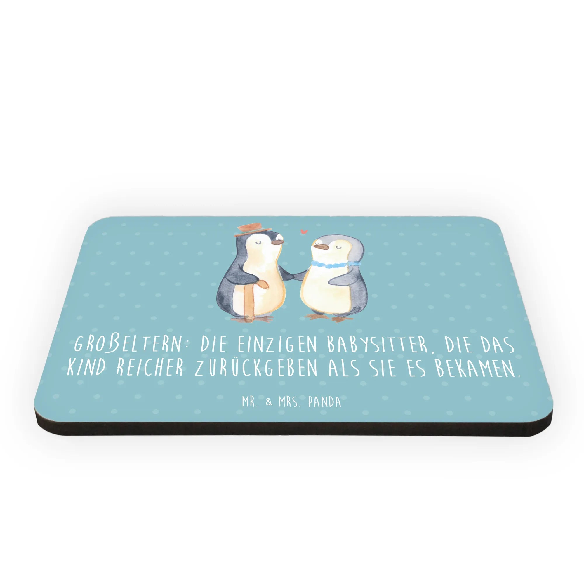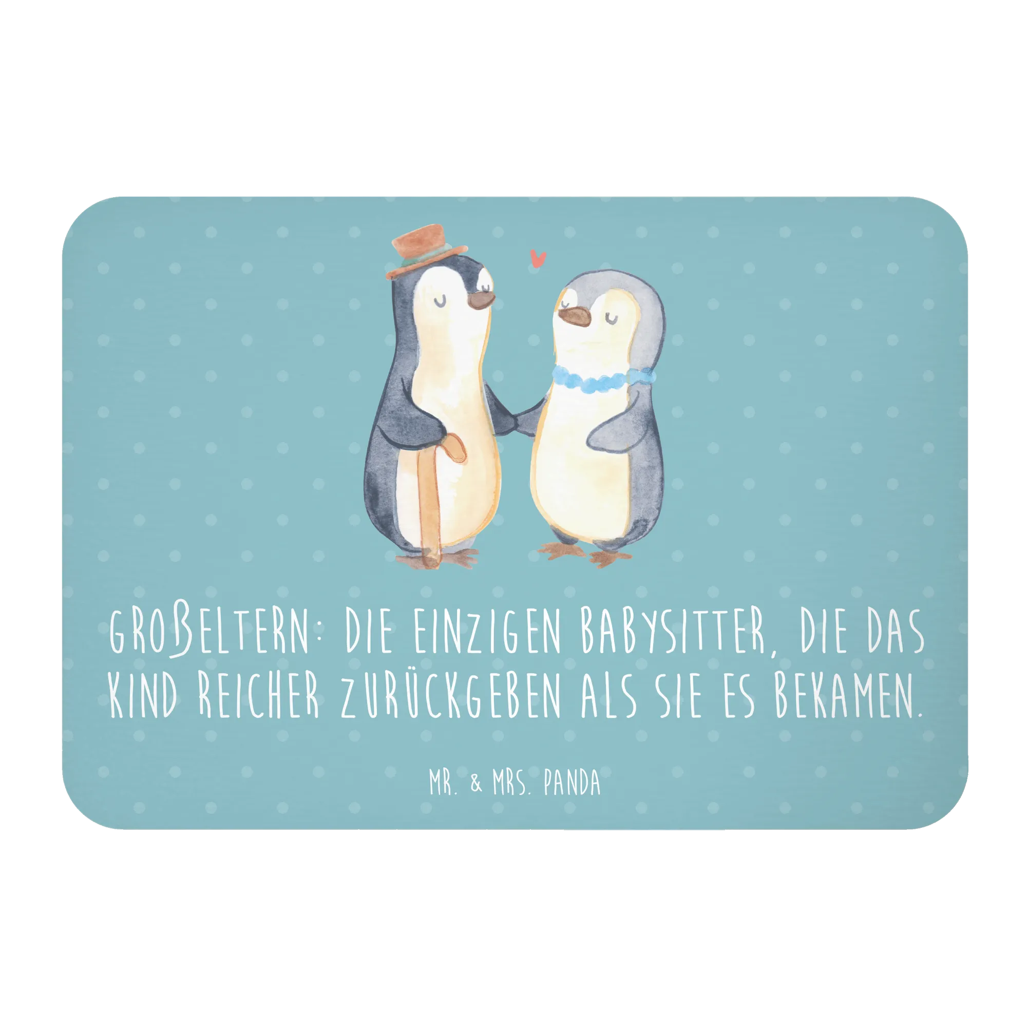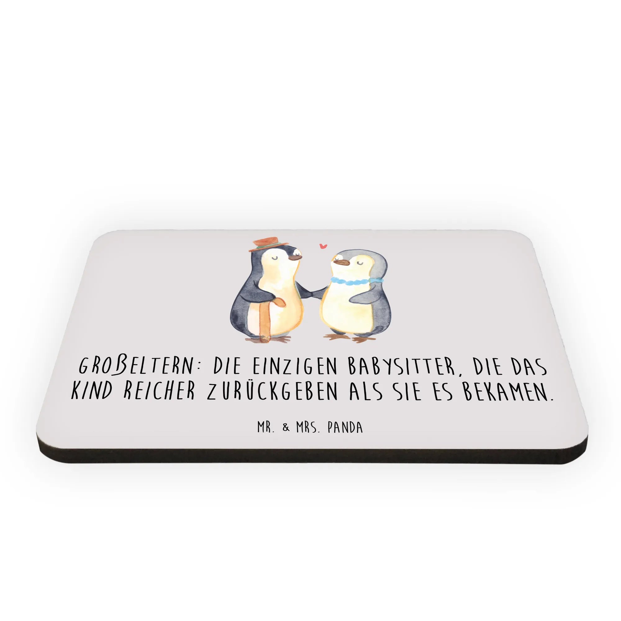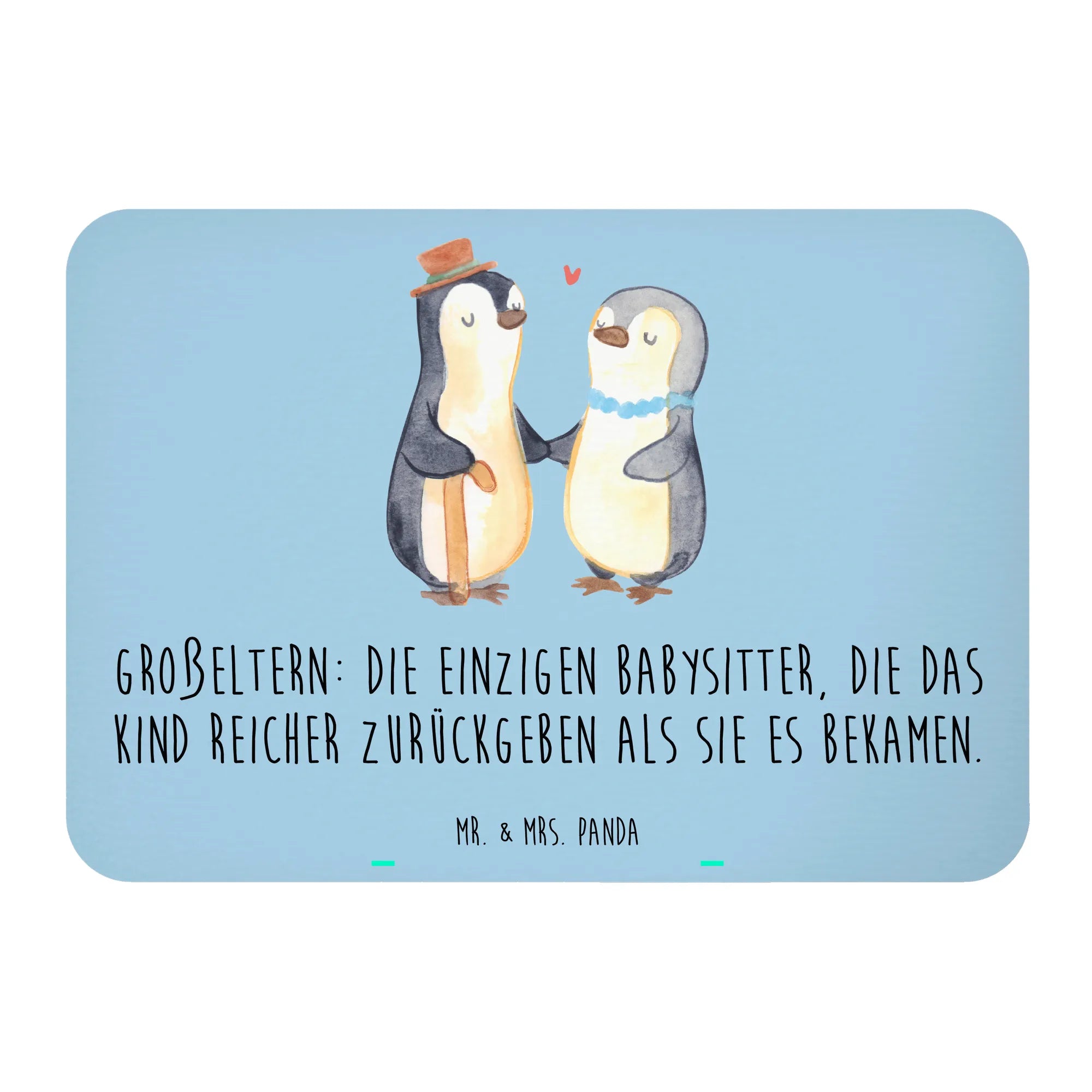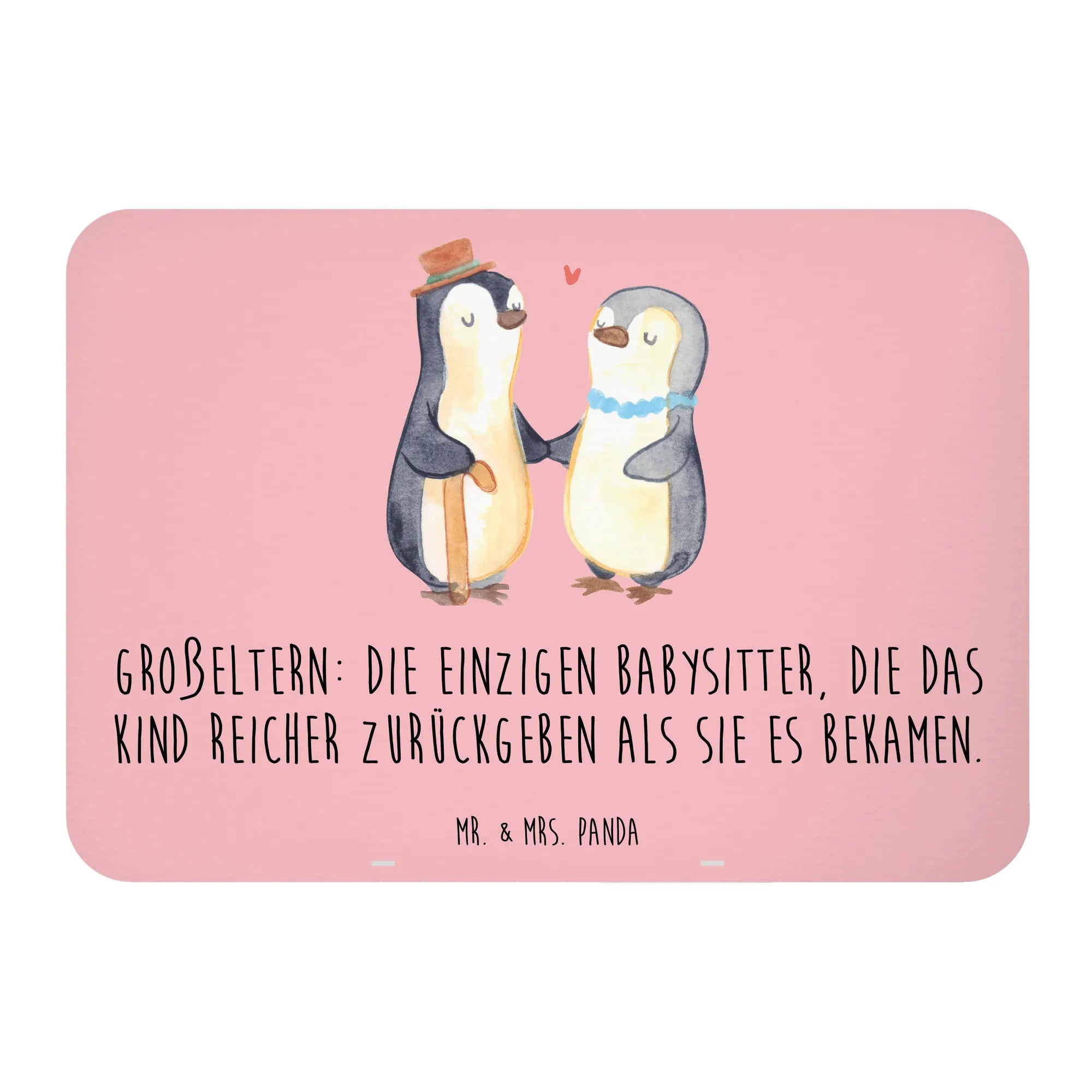 Der Kühlschrankmagnet von Mr. & Mrs. Panda mit dem herzerwärmenden Motiv "Großeltern: die einzigen Babysitter, die das Kind reicher zurückgeben als sie es bekamen" ist das perfekte Geschenk für alle, die die besondere Beziehung zu ihren Großeltern schätzen.