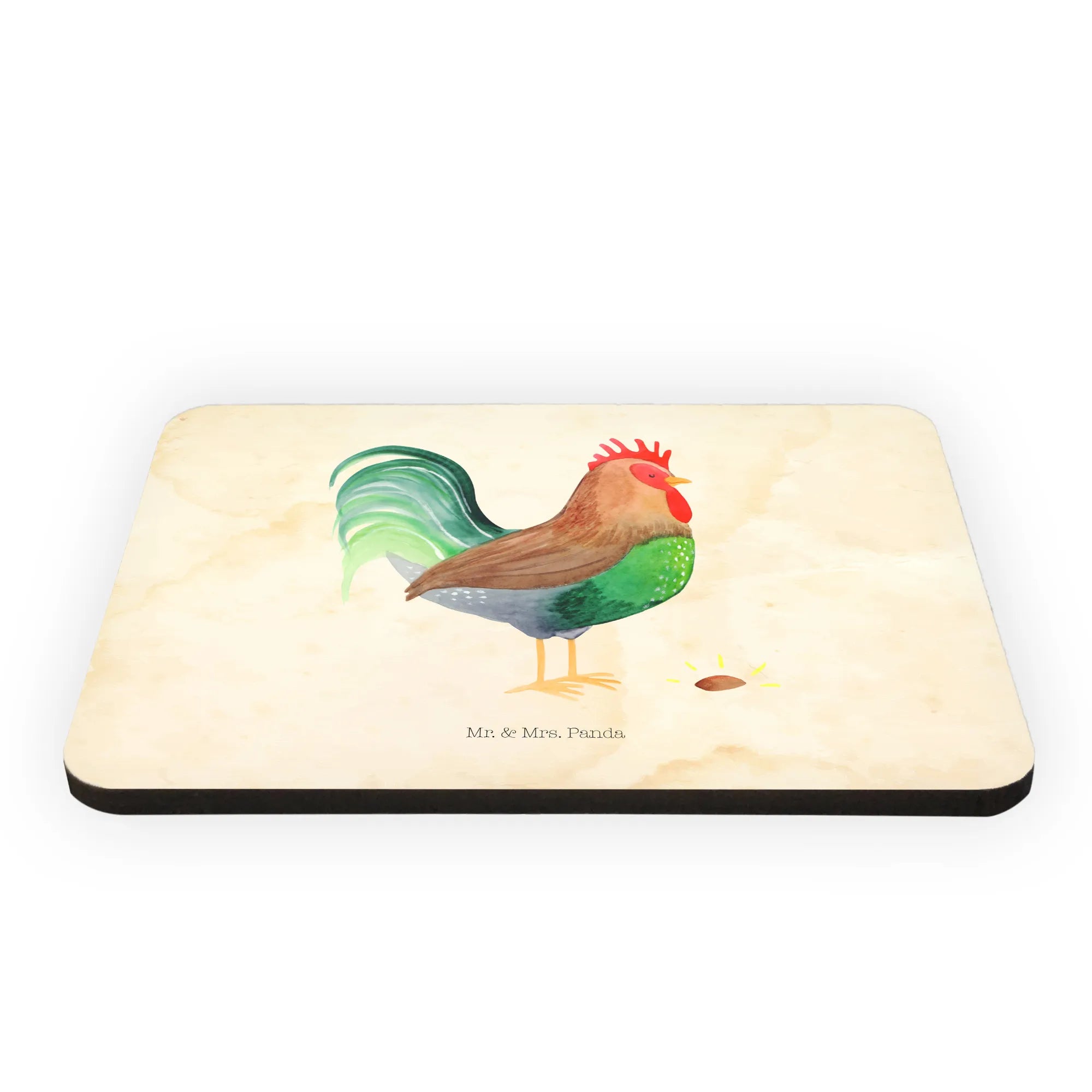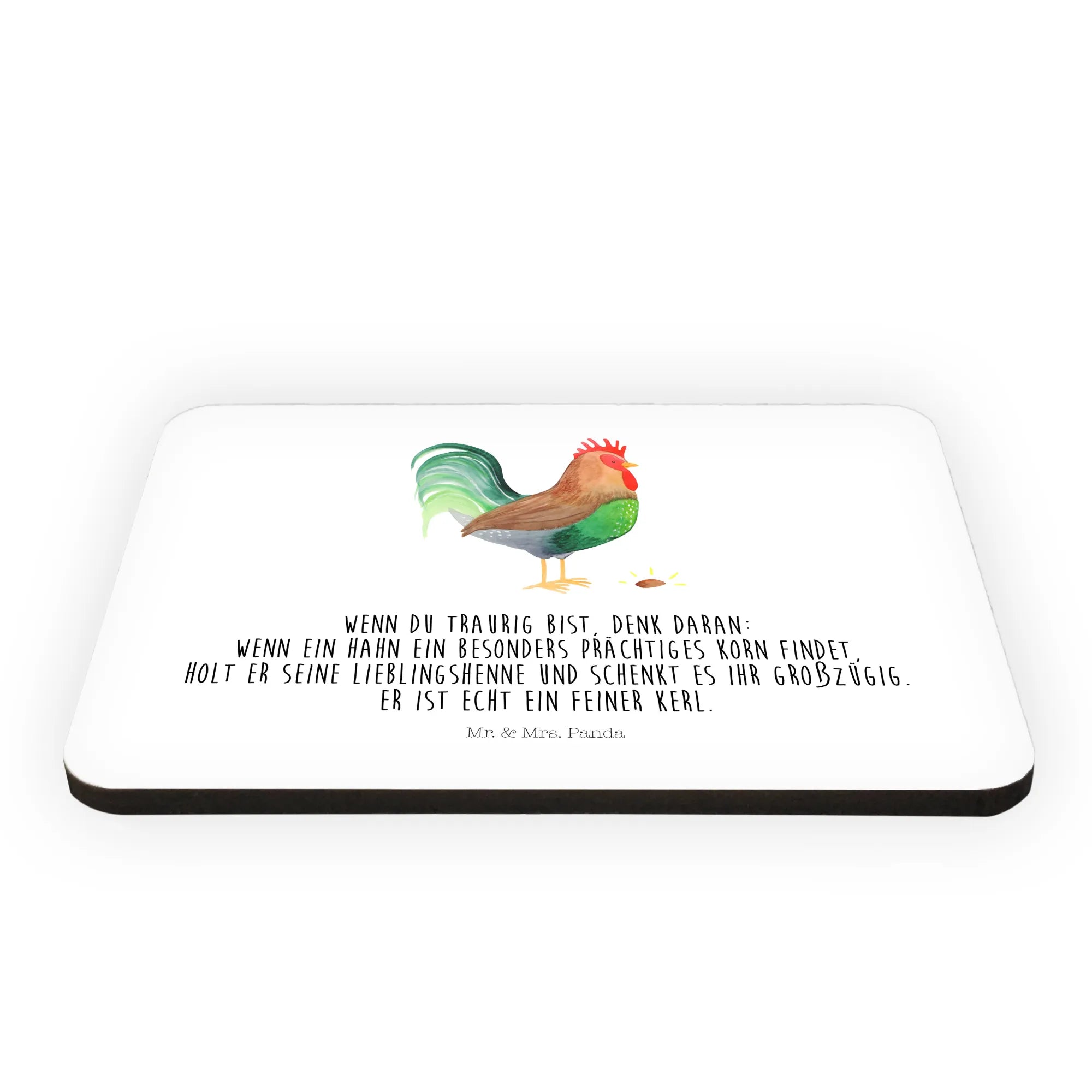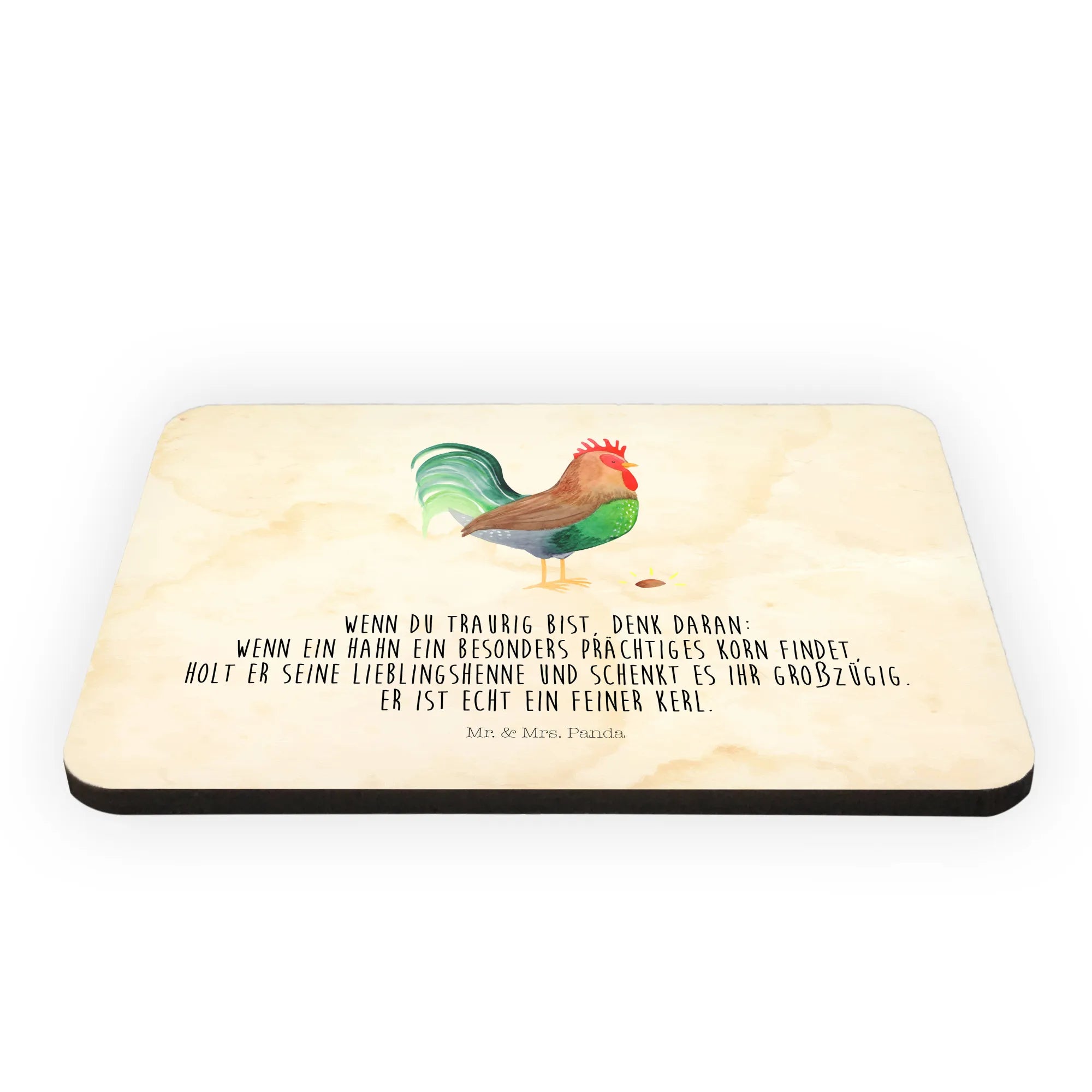 Entdecke den charmanten Kühlschrankmagneten "Hahn mit Korn" von Mr. & Mrs. Panda, der nicht nur Deine Küche verschönert, sondern auch das Herz eines jeden Tierliebhabers erfreut. Dieser einzigartige Magnet aus feinem Holz misst 52 mm x 74 mm und wiegt nur 20 g, was ihn zum idealen Begleiter für Dein Zuhause macht. Mit seinem bunten und farbenfrohen Design bringt der Magnet Freude und Leben an jede Kühlschranktür oder auf Dein Whiteboard.