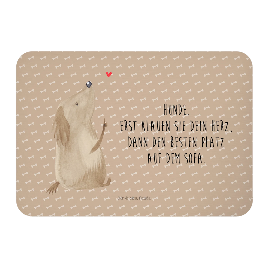 Du bist auf der Suche nach dem perfekten Geschenk für einen Hundeliebhaber oder vielleicht sogar für dich selbst? Dann ist der Mr. & Mrs. Panda Kühlschrankmagnet "Hund Liebe" aus der Hunde Kollektion die ideale Wahl! Dieser liebevoll gestaltete Magnet bringt nicht nur Farbe in deine Küche, sondern auch viel Freude. Mit dem süßen Hundemotiv und dem witzigen Spruch "Hunde. Erst klauen sie dein Herz, dann den besten Platz auf dem Sofa." weiß jeder, dass hier echte Hundeliebe am Werk ist.