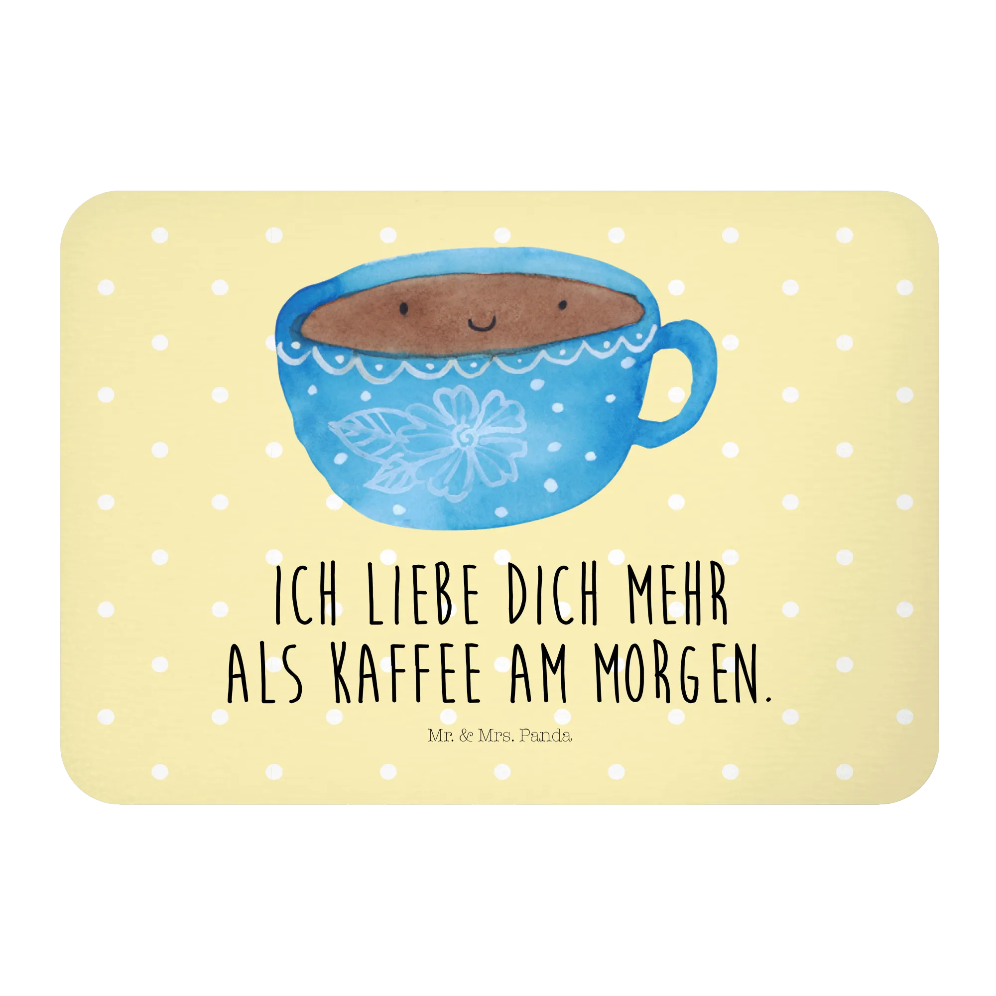 Der Kühlschrankmagnet "Kaffee Tasse" aus der Small World Kollektion von Mr. & Mrs. Panda ist das perfekte Geschenk für alle Kaffeeliebhaber und Freunde fröhlicher Wohnaccessoires. Mit seinem liebevollen Design, das eine glückliche Kaffeetasse zeigt, bringt dieser Magnet nicht nur Farbe, sondern auch gute Laune in jedes Zuhause. Der Spruch "Ich liebe dich mehr als Kaffee am Morgen" wird jeden Morgen ein Lächeln zaubern und die ersten Minuten des Tages versüßen.
