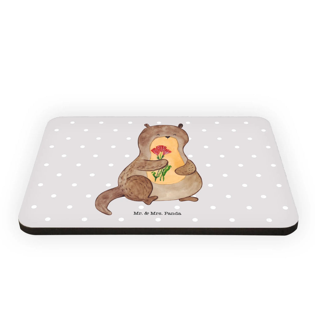 Magnet Otter Blumenstrauß - mit Spruch - Grau Pastell
