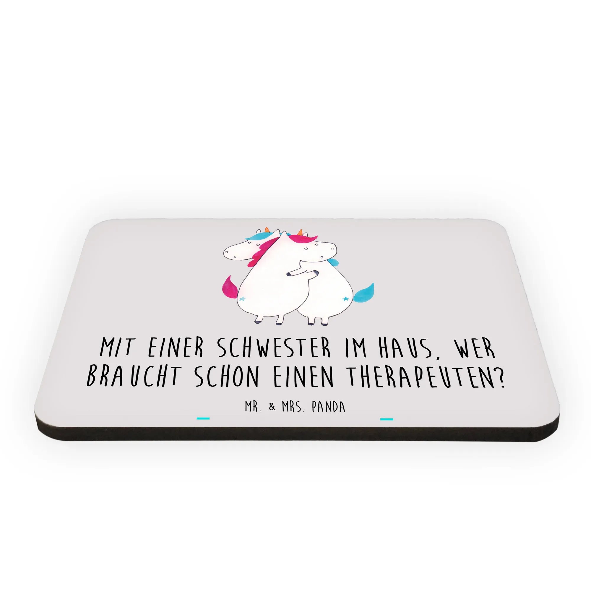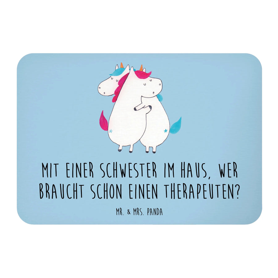 Der Spruch "Mit einer Schwester im Haus, wer braucht schon einen Therapeuten?" fängt das besondere Band zwischen Schwestern perfekt ein und sorgt für ein Schmunzeln jeden Tag. Mit seinen handgezeichneten, bunten Motiven und der angenehmen Oberfläche ist er nicht nur eine praktische Kühlschrankdekoration, sondern auch ein wunderschöner Hingucker.