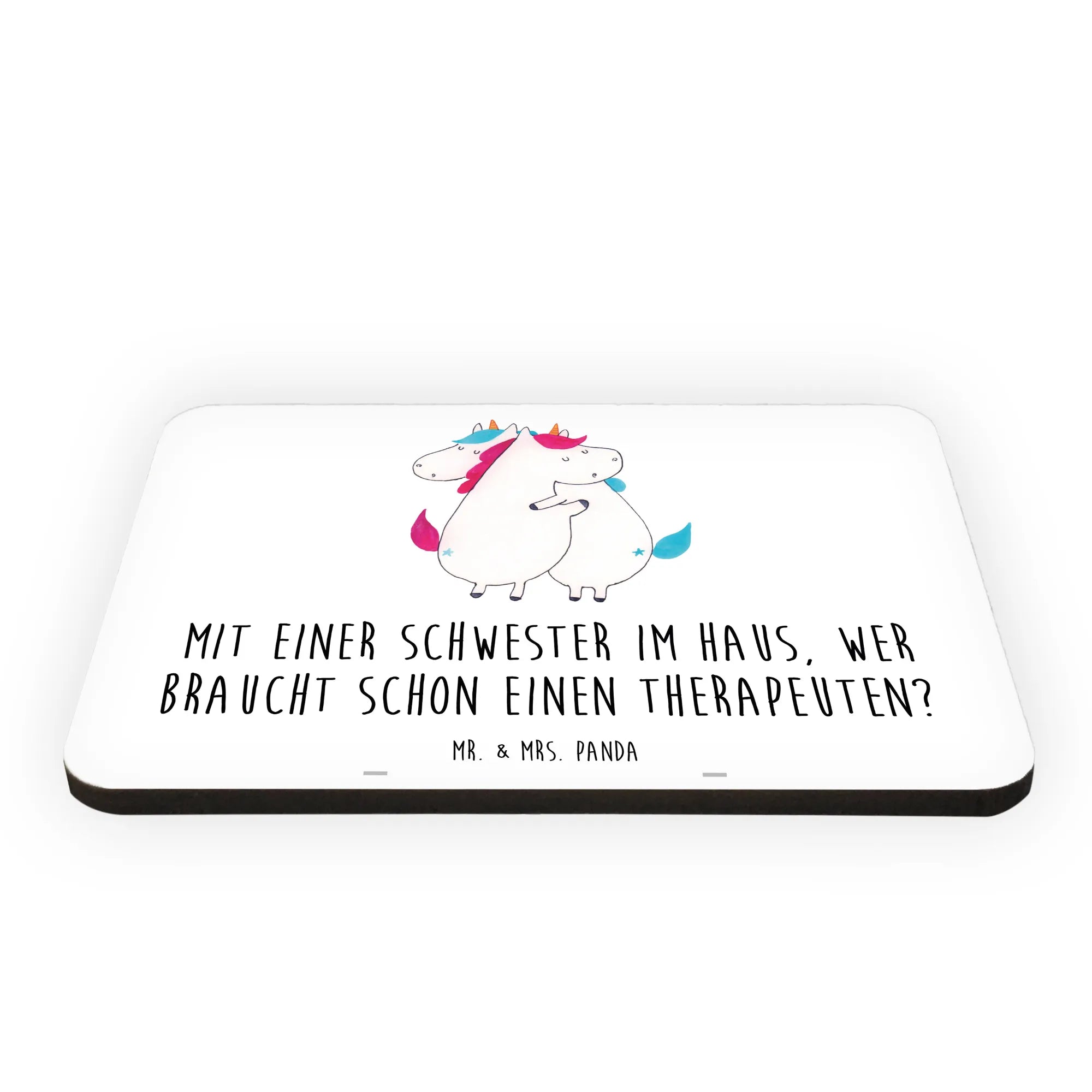 Dieser süße Kühlschrankmagnet von Mr. & Mrs. Panda ist das perfekte Geschenk für alle Schwestern und Geschwister, die eine besondere Bindung haben. Mit dem charmanten Spruch 'Mit einer Schwester im Haus, wer braucht schon einen Therapeuten?' spiegelt der Magnet nicht nur die liebevolle Beziehung zwischen Schwestern wider, sondern zaubert auch ein Lächeln auf jedes Gesicht.