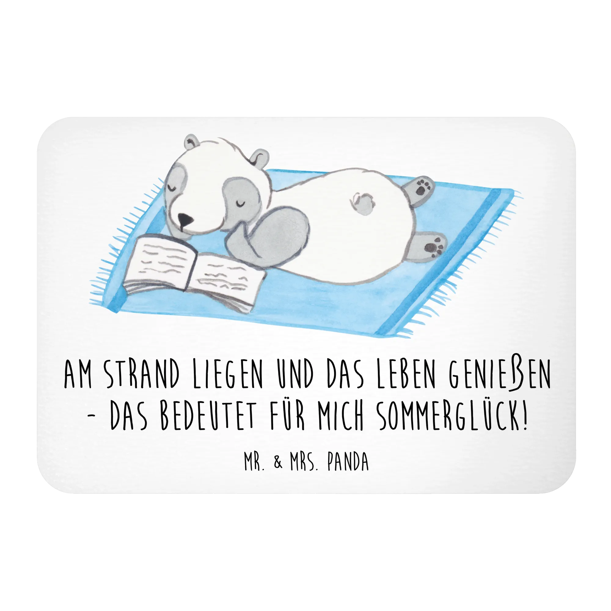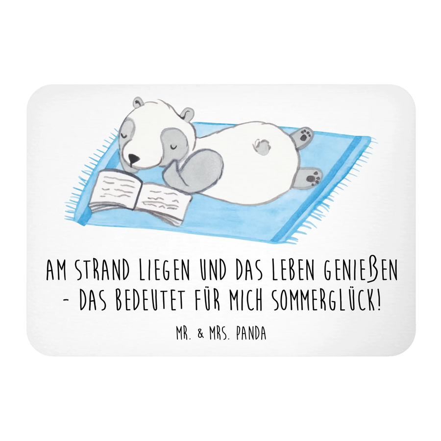 Der Mr. & Mrs. Panda Kühlschrankmagnet mit dem Sommermotiv ist das perfekte Geschenk für alle, die die warmen Tage des Jahres lieben. Mit der Aufschrift "Am Strand liegen und das Leben genießen - das bedeutet für mich Sommerglück!" zaubert dieser Magnet ein Lächeln auf jedes Gesicht und erinnert Dich an unbeschwerte Zeiten am Strand. Ob als Souvenir aus dem letzten Urlaub oder als liebevolles Abschiedsgeschenk für Freunde, die in die Sommerferien gehen – dieser Deko-Magnet trifft garantiert den richtigen Nerv!