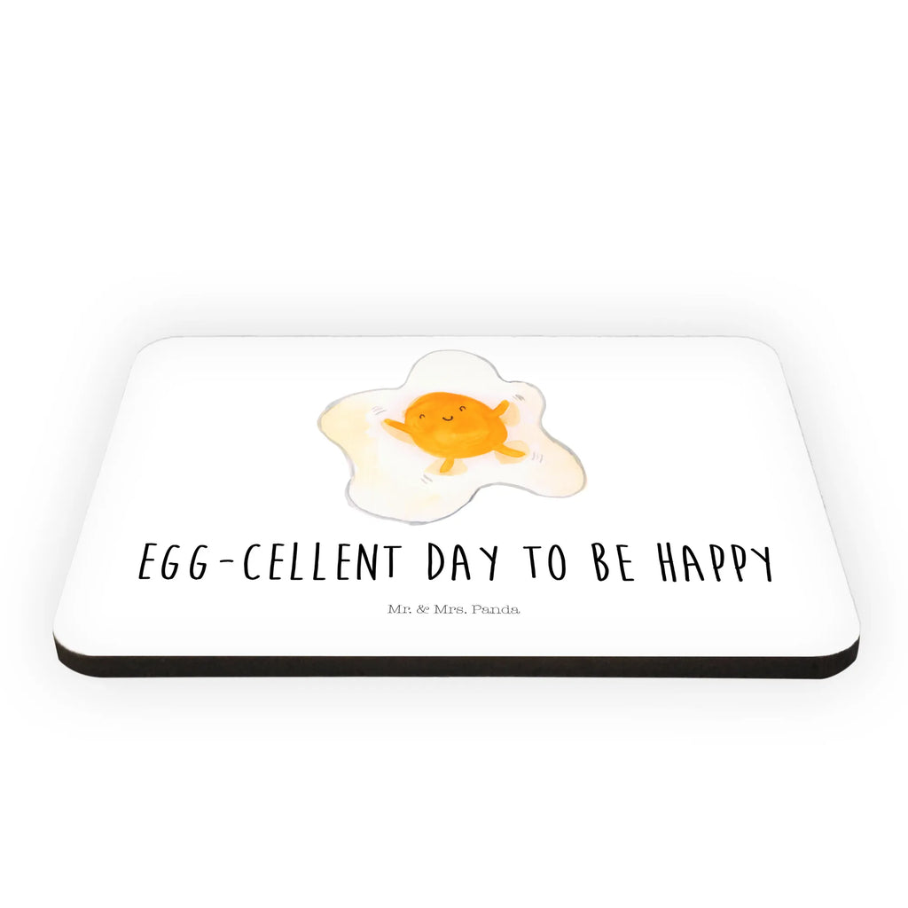 Dieser Magnet zeigt ein fröhliches Spiegelei mit dem witzigen Spruch 'Egg-cellent day to be happy'. Mit seinem humorvollen Design bringt er garantiert gute Laune in jede Küche!
