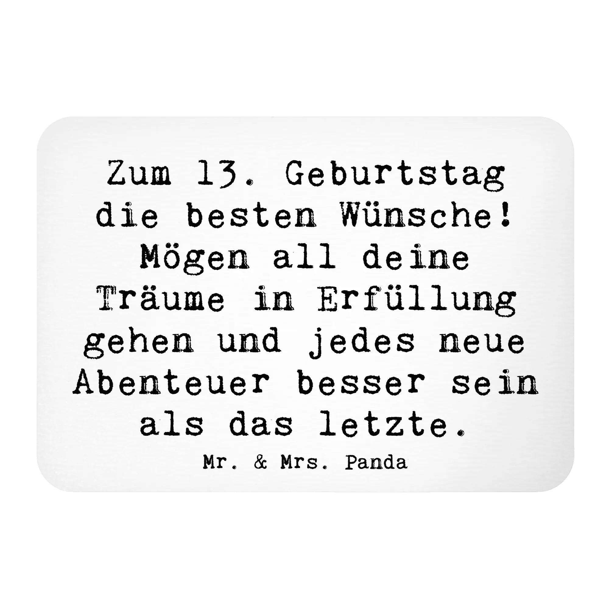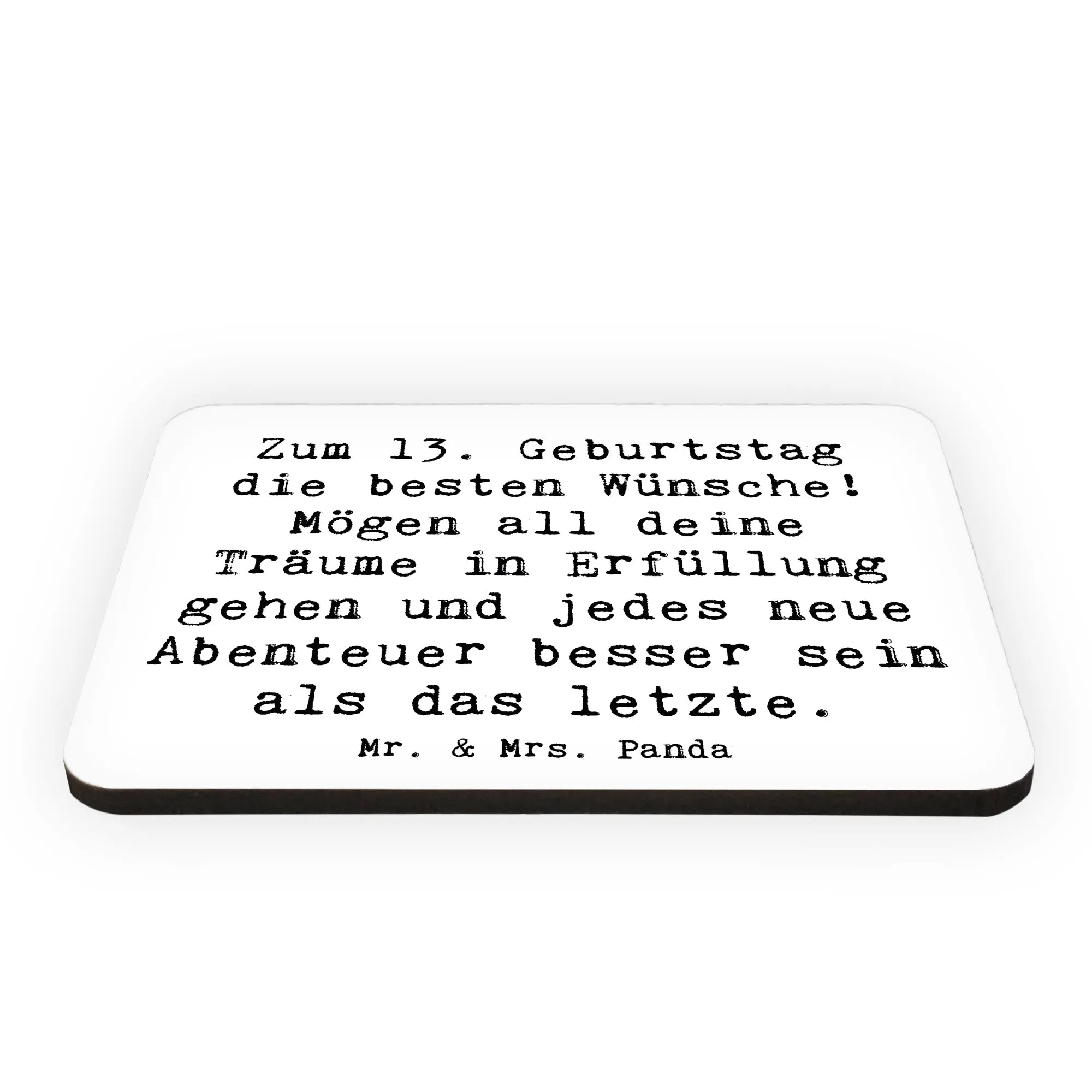Jeder Geburtstag ist etwas ganz Besonderes, insbesondere der 13. Geburtstag! Mit unserem wunderschönen Magneten von Mr. & Mrs. Panda, bedruckt mit dem motivierenden Spruch "Zum 13. Geburtstag die besten Wünsche! Mögen all deine Träume in Erfüllung gehen und jedes neue Abenteuer besser sein als das letzte.", kannst du diesen Tag unvergesslich machen.