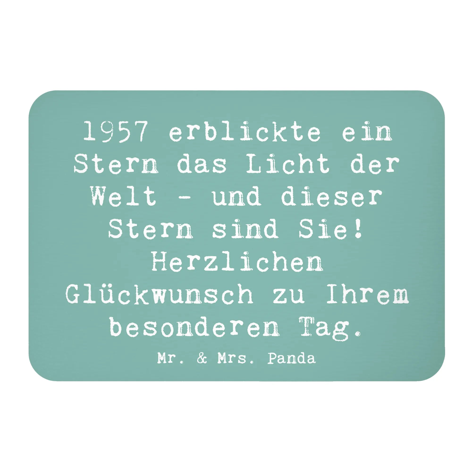 Bist du auf der Suche nach einem ganz besonderen Geschenk? Dann ist der Kühlschrankmagnet 1957 Geburtstag von Mr. & Mrs. Panda genau das Richtige! Dieser zauberhafte Magnet ist mehr als nur ein praktisches Deko-Element – er erzählt die Geschichte von einem einzigartigen Jahr. Egal, ob du ihn zum 66. Geburtstag eines geliebten Menschen schenkst oder einfach nur die Erinnerungen an dieses Jahr festhalten möchtest, dieser Magnet ist perfekt dafür geeignet. Die liebevollen, handgezeichneten Motive und der inspirierende Spruch "1957 erblickte ein Stern das Licht der Welt - und dieser Stern sind Sie! Herzlichen Glückwunsch zu Ihrem besonderen Tag." machen ihn zu einem tollen Geburtstag Geschenk.