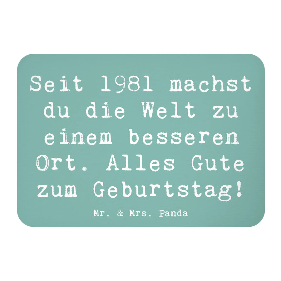 Der Kühlschrankmagnet '1981 Geburtstag' von Mr. & Mrs. Panda ist das perfekte Geschenk für alle, die 1981 geboren wurden. Mit dem liebevollen Slogan "Seit 1981 machst du die Welt zu einem besseren Ort. Alles Gute zum Geburtstag!" erinnert dieser bunte Magnet an unvergessliche Momente und bringt Freude in jeden Haushalt.