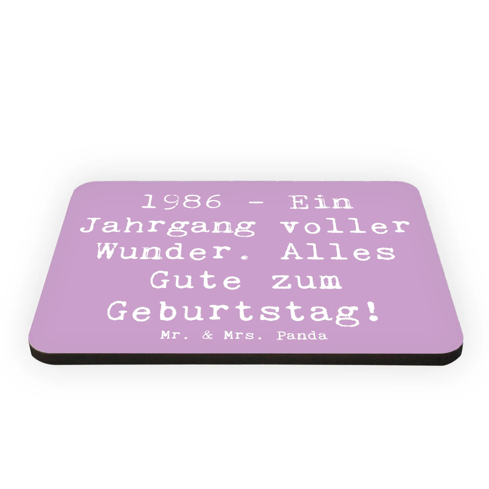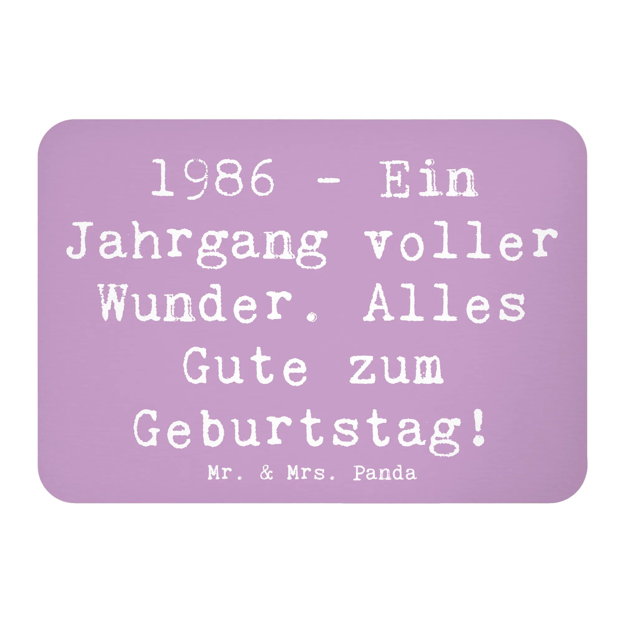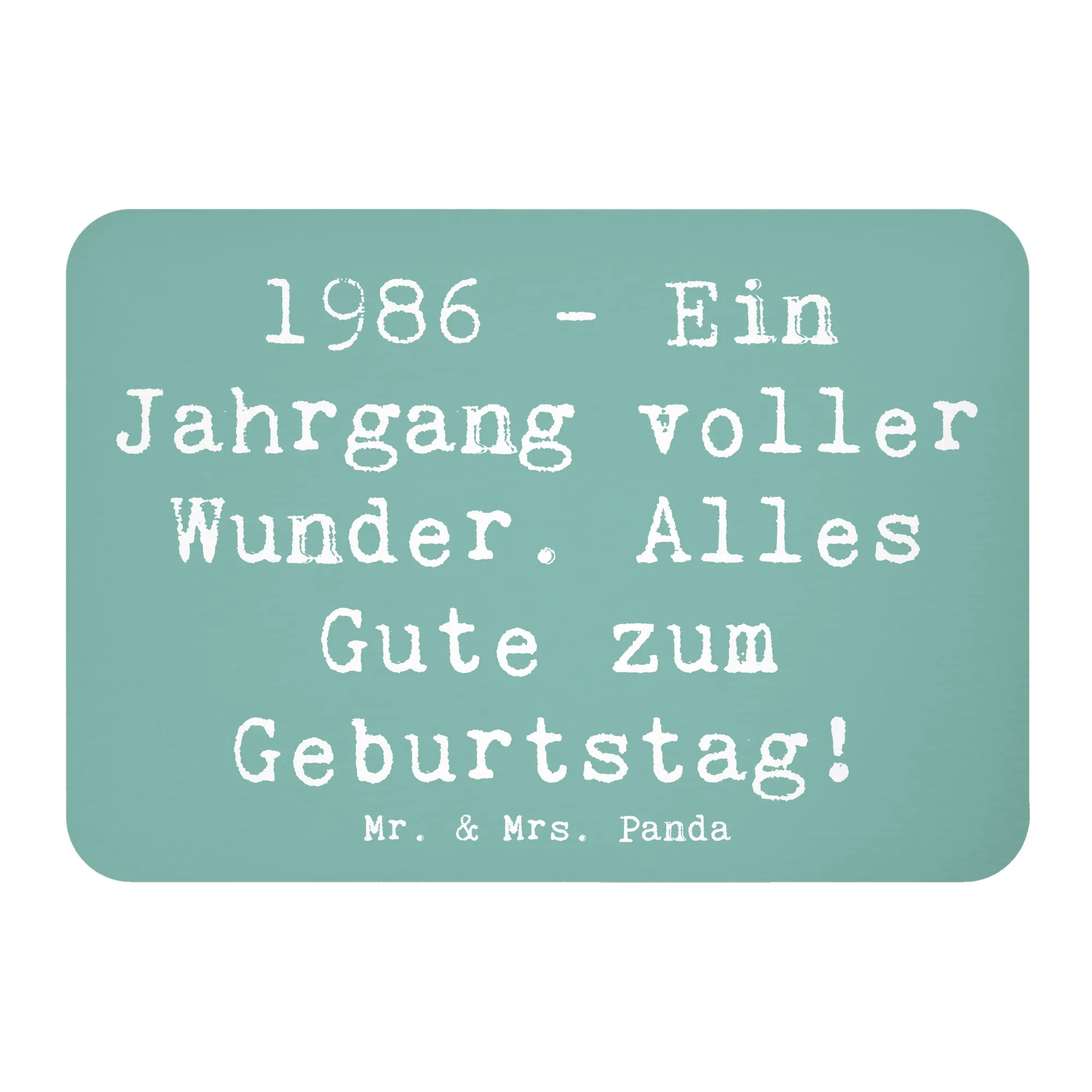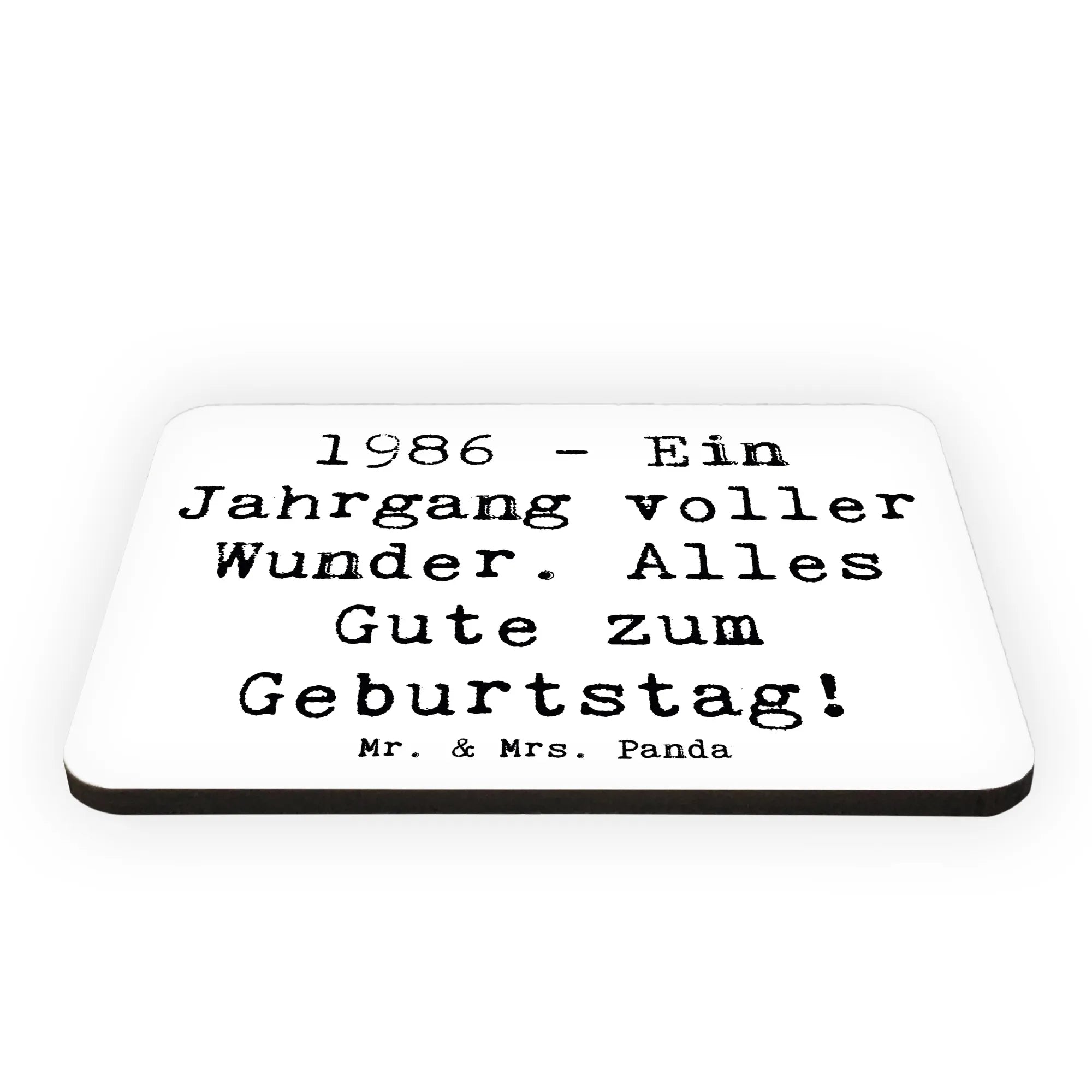 Der Kühlschrankmagnet "1986 - Ein Jahrgang voller Wunder. Alles Gute zum Geburtstag!" aus der exklusiven Geburtstag Geburtsjahr-Kollektion von Mr. & Mrs. Panda ist das perfekte Geschenk für alle, die 1986 das Licht der Welt erblickt haben.