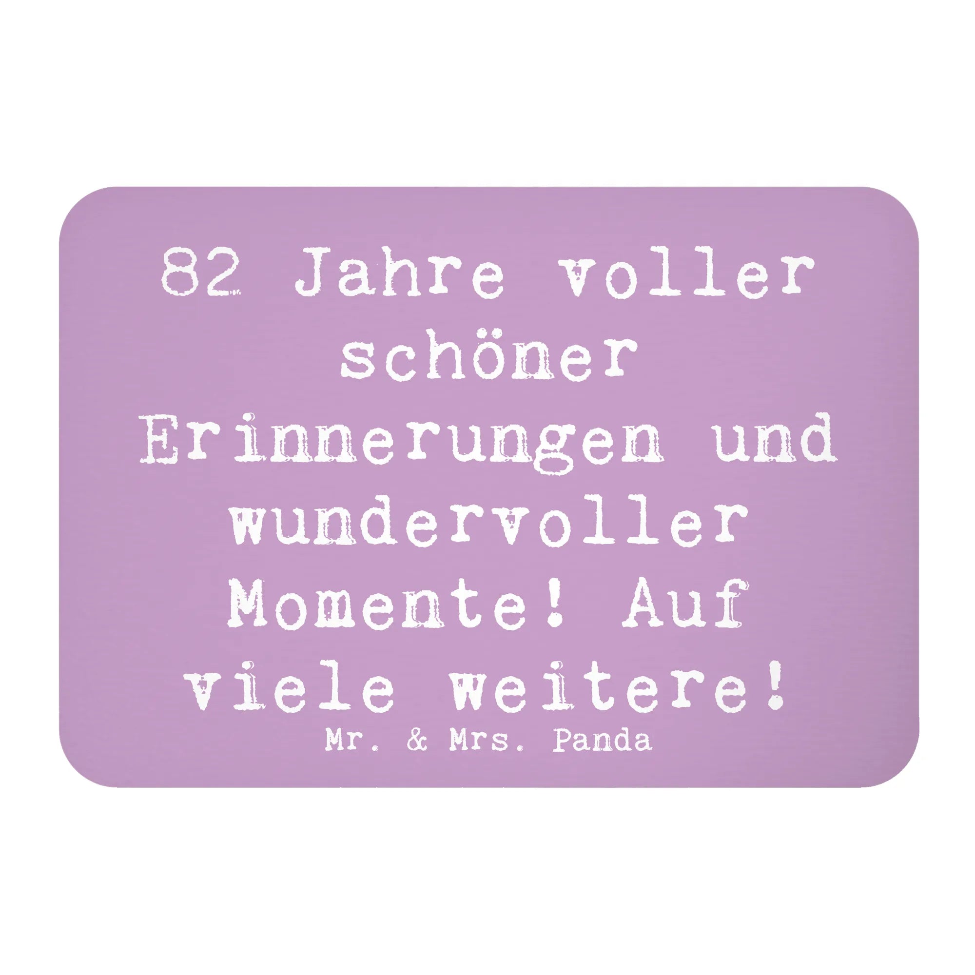 Entdecke den perfekten Kühlschrankmagneten zum 82. Geburtstag! Dieser wunderschöne Magnet von Mr. & Mrs. Panda wurde mit viel Liebe und einem bezaubernden Spruch entworfen: '82 Jahre voller schöner Erinnerungen und wundervoller Momente! Auf viele weitere!'