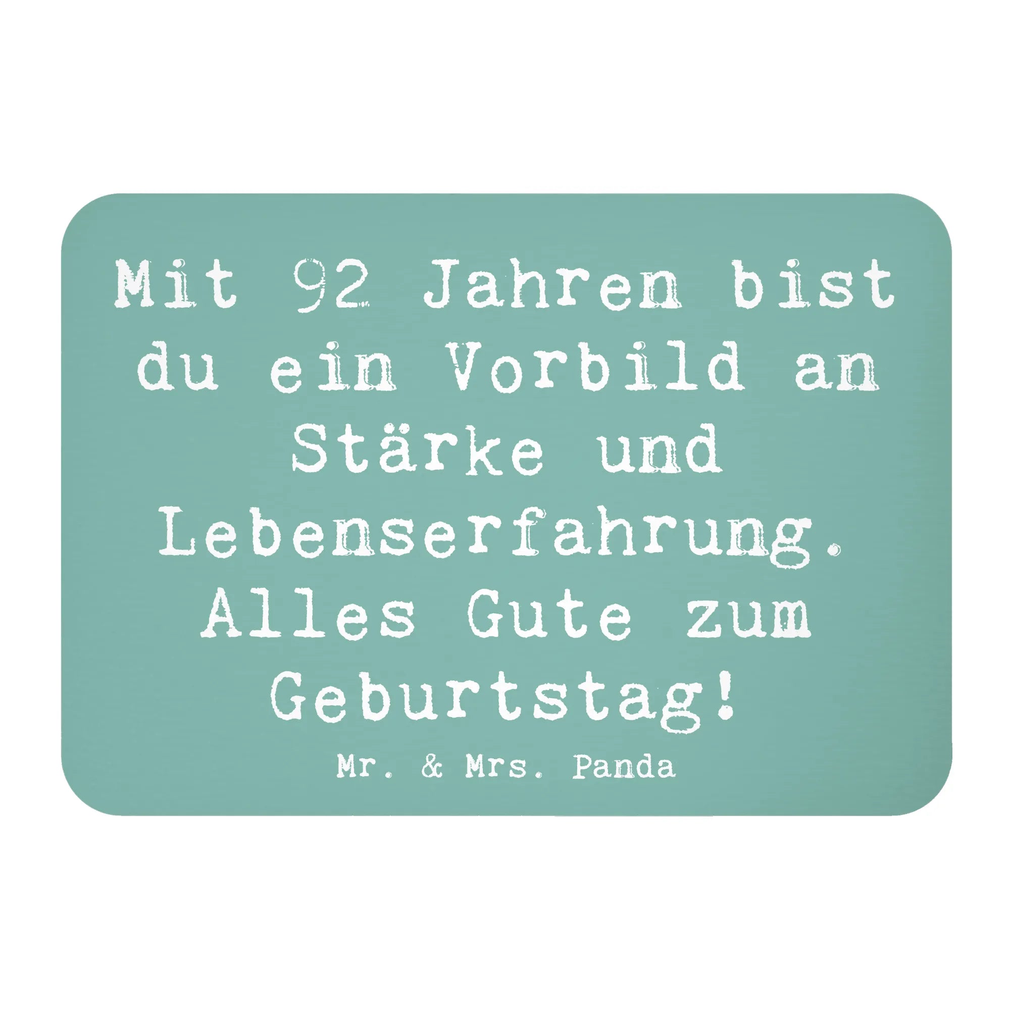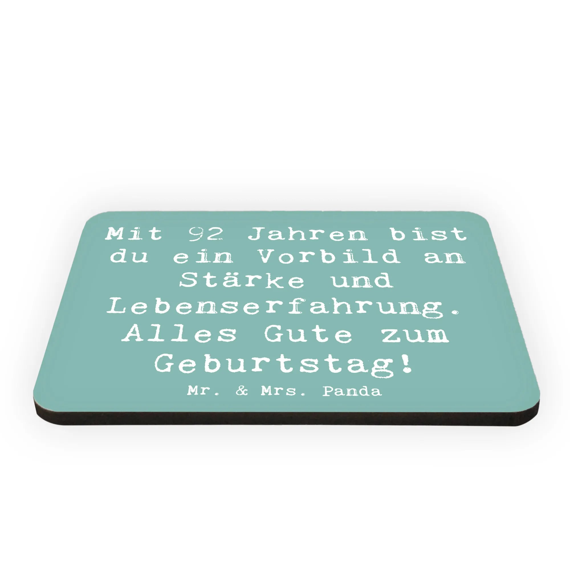 Feiere den 92. Geburtstag mit einem ganz besonderen Kühlschrankmagneten von Mr. & Mrs. Panda! 🎉 Dieser liebevoll gestaltete Magnet besticht durch seine bunten Farben und zeigt den tollen Spruch: 'Mit 92 Jahren bist du ein Vorbild an Stärke und Lebenserfahrung. Alles Gute zum Geburtstag!' Ideal für alle, die einen lieben Menschen zu diesem beeindruckenden Ehrentag überraschen möchten.