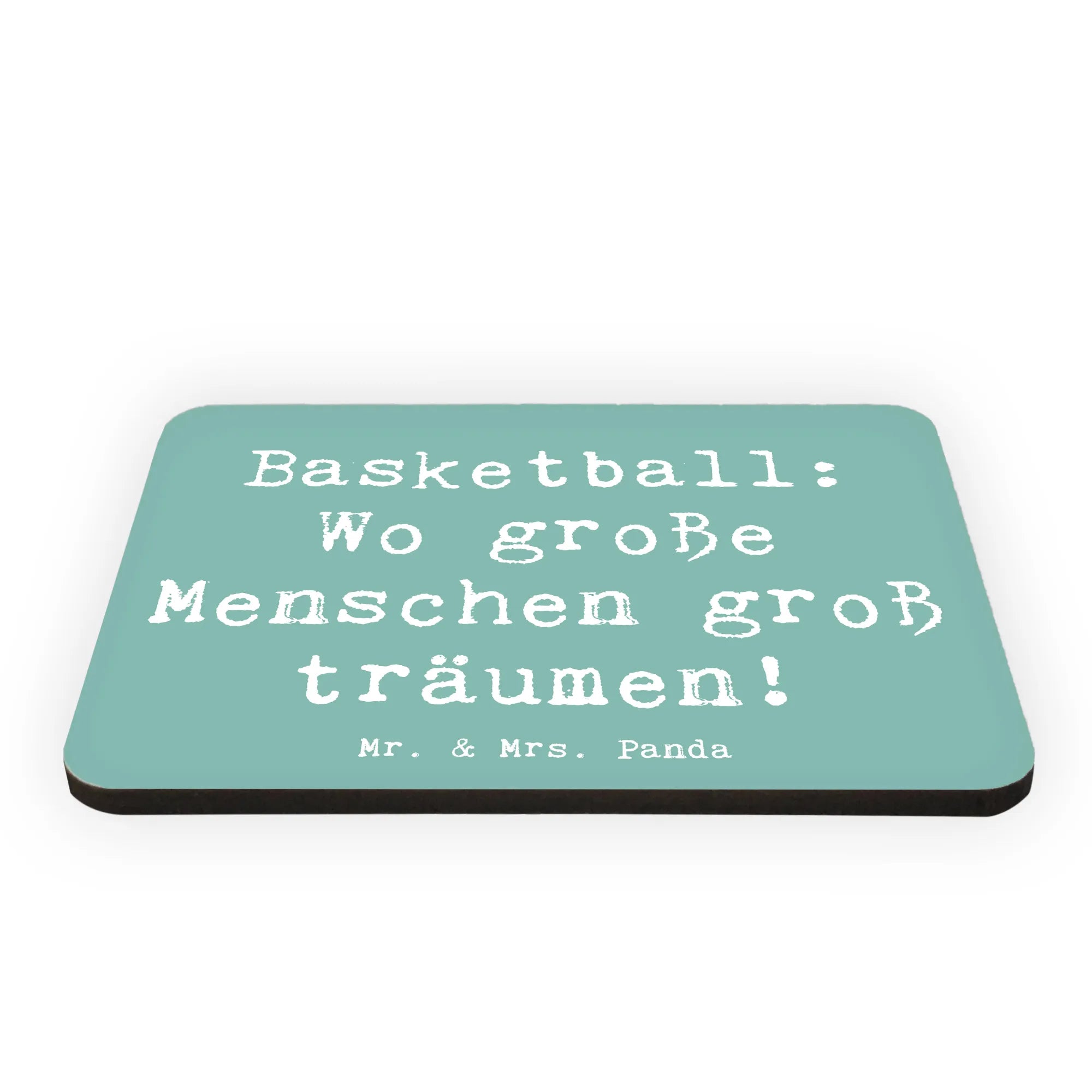 Mit dem liebevoll gestalteten Motiv 'Basketball: Wo große Menschen groß träumen!' zaubert er ein Lächeln auf dein Gesicht. Die eckige Form und die angenehme Oberfläche des Magneten sorgen dafür, dass er sowohl stylish als auch funktional ist.