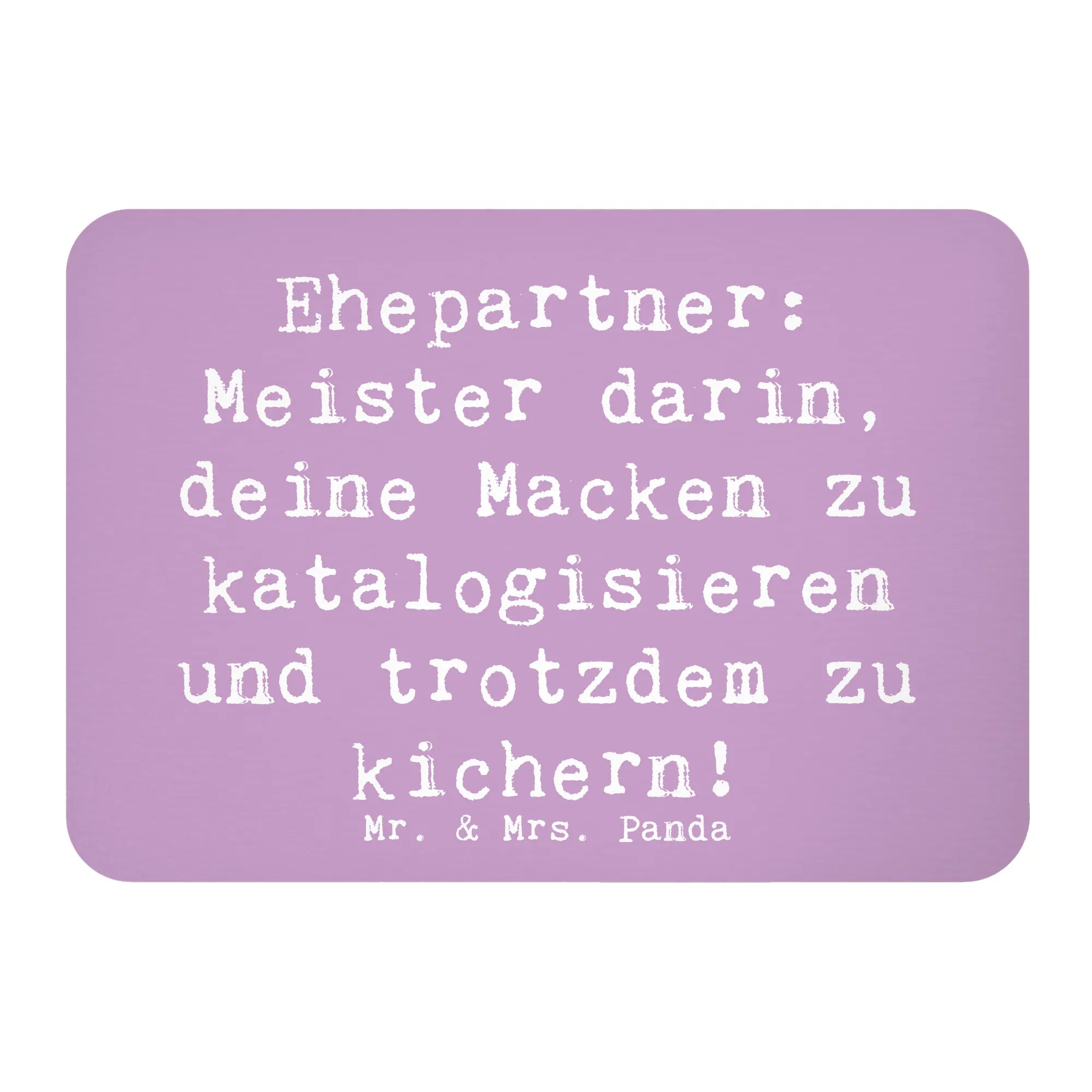 Mit dem Spruch "Ehepartner: Meister darin, deine Macken zu katalogisieren und trotzdem zu kichern!" feierst du die besondere Verbindung zu deinem Lebenspartner. Dieser Magnet ist nicht nur ein Blickfang, sondern auch ein praktisches Accessoire für deinen Kühlschrank oder das Whiteboard.