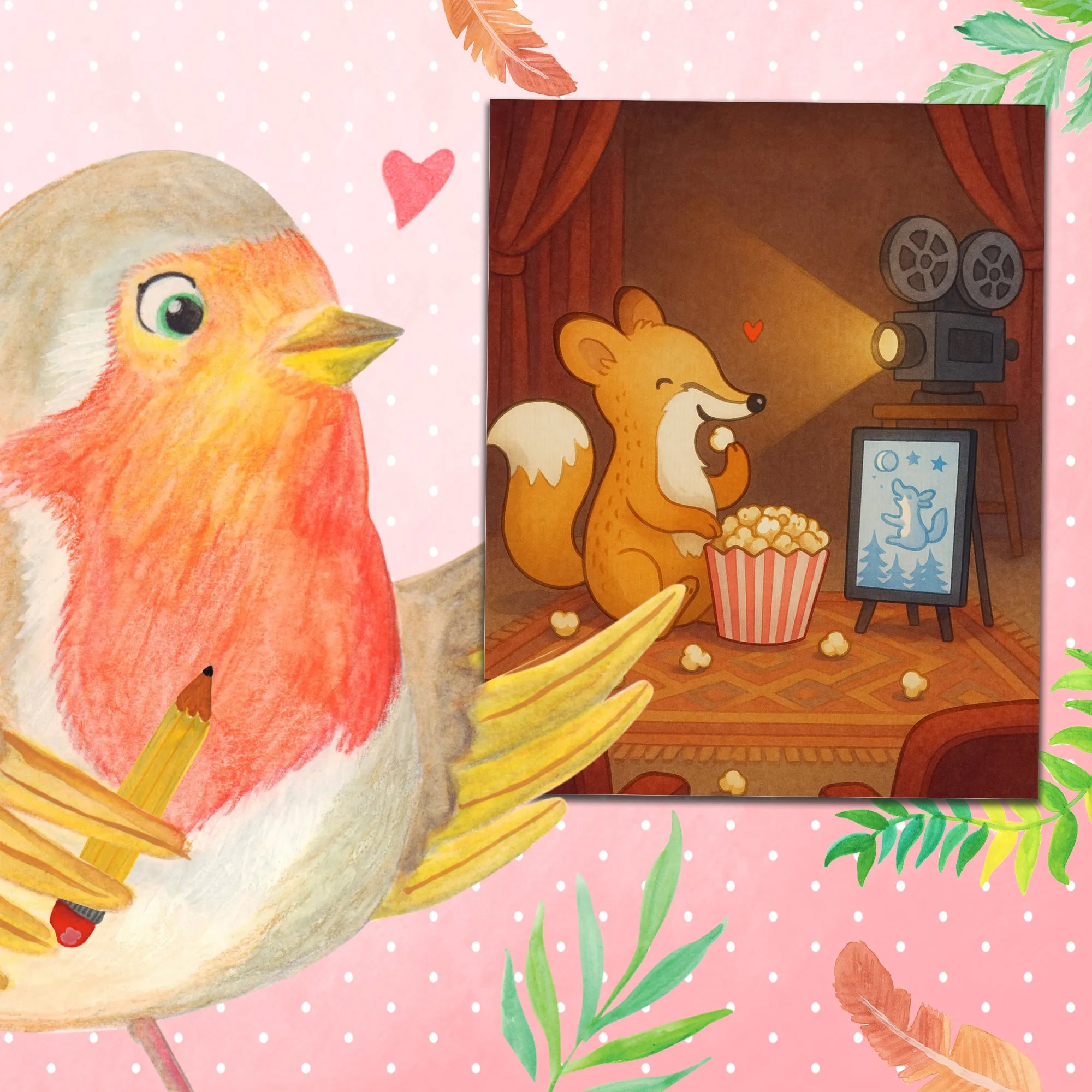 Das Kinoerlebnis zuhause: Ein kleiner Fuchs, Popcorn in der Pfote, und die große Leinwand in Gedanken. Dieses Motiv erzählt die Geschichte davon, wie Kino zur persönlichen Medizin werden kann. Ob du von großen Kinoplakaten träumst oder einfach das Heimkino liebst — der Fuchs macht jeden Filmstart zu einem besonderen Moment. Seine gespannte Haltung, das Rascheln des Popcorns und die gemütliche Stimmung erinnern daran, dass Kino nicht nur Augen, sondern auch Herzen berührt. Dieses Motiv eignet sich wunderbar als Geschenk für Kinofans, als Dekoration für Filmliebhaber oder als liebevolle Erinnerung, sich selbst kleine Highlights zu gönnen. Die Illustration ist warm, charmant und bringt ein Stück Kinomagie in deinen Alltag. Lass dich vom Fuchs anstecken: Manchmal ist ein Kinobesuch im Kopf oder im Wohnzimmer genau die Medizin, die du brauchst.