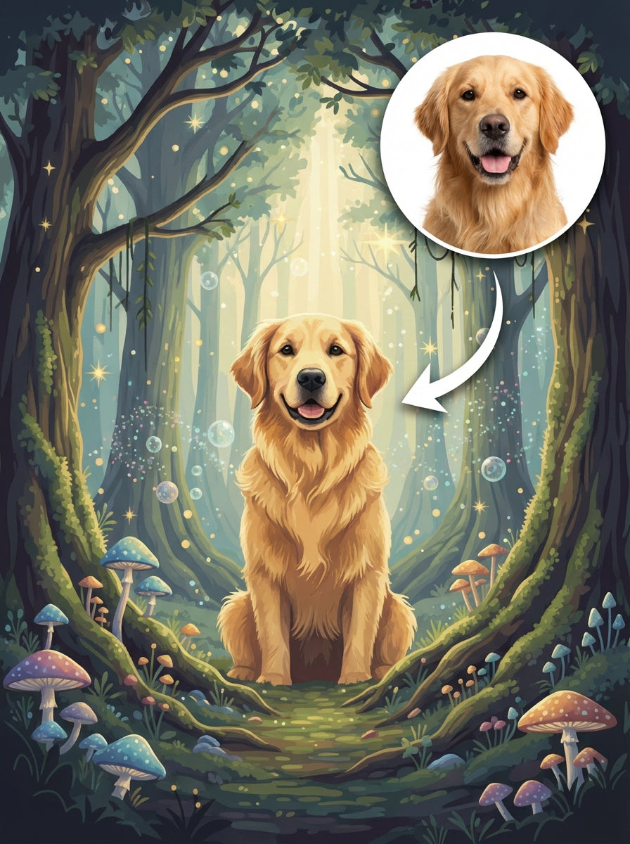 Malen nach Zahlen Hunde Portrait im Märchenwald Stil Design