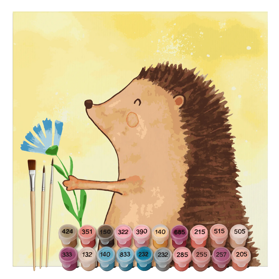 Malen nach Zahlen Igel Blumen Motiv - Ohne Rahmen - 36 Farben (Hohe Auflösung)