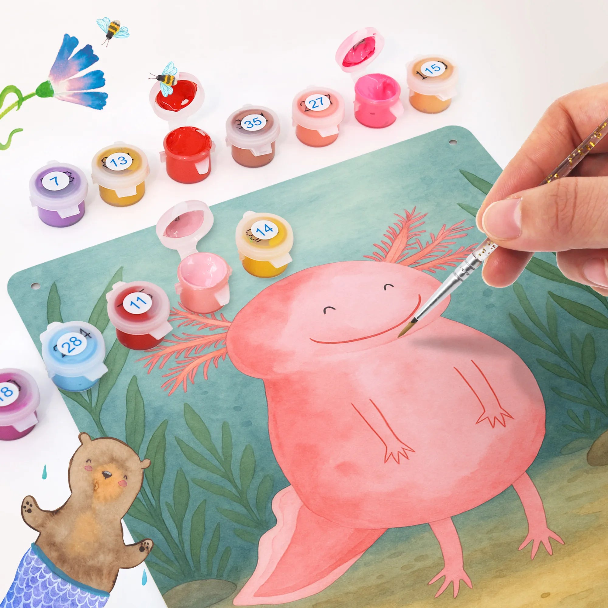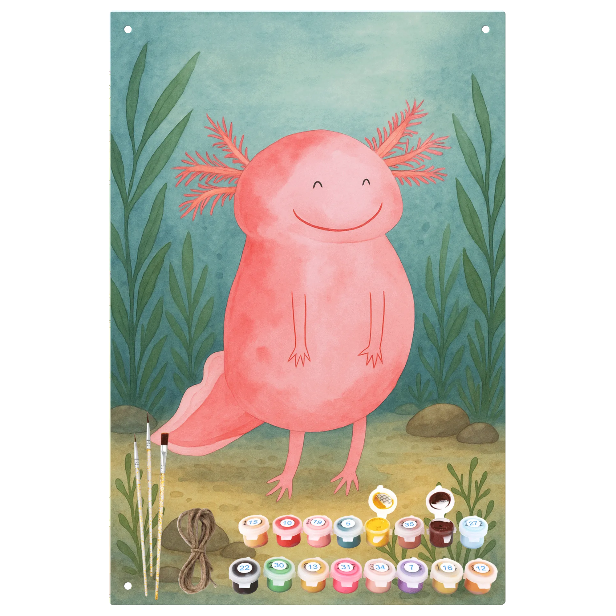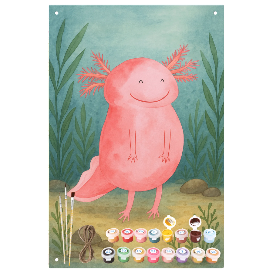 Malen nach Zahlen Metallschild Axolotl Glücklich Design