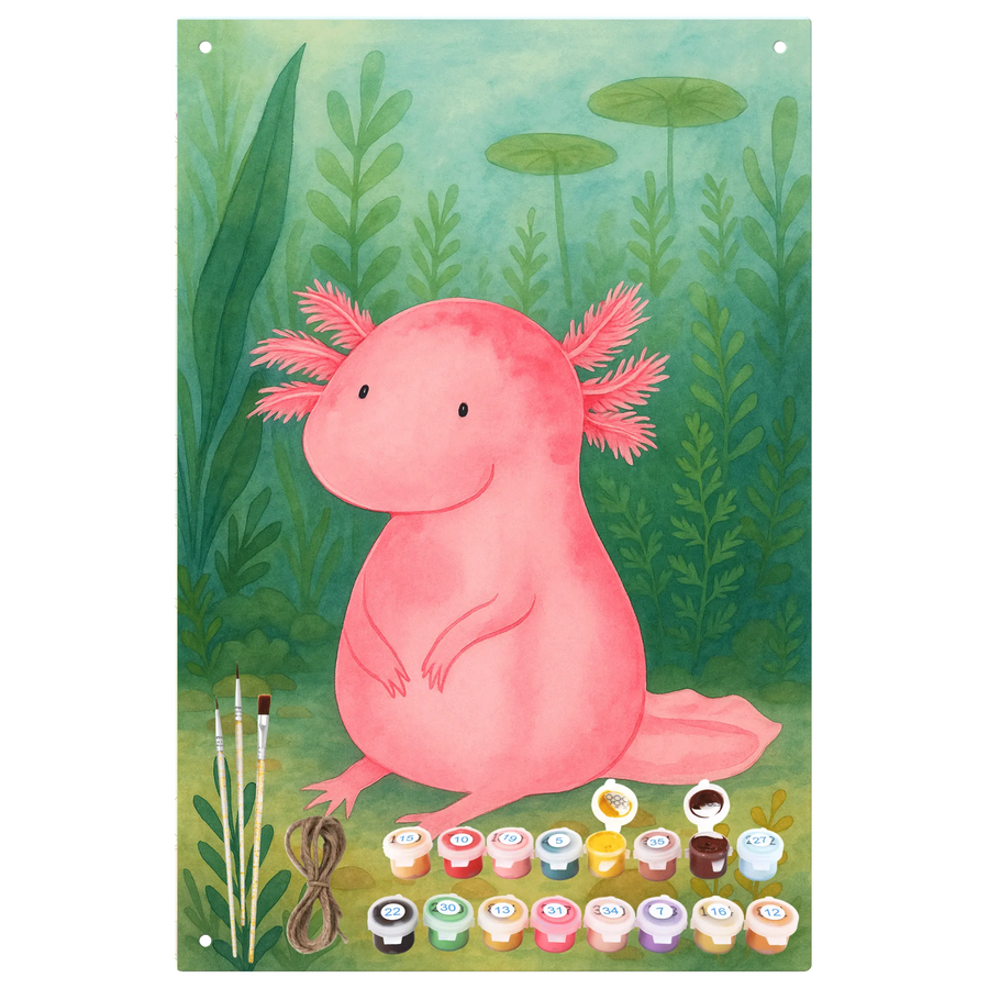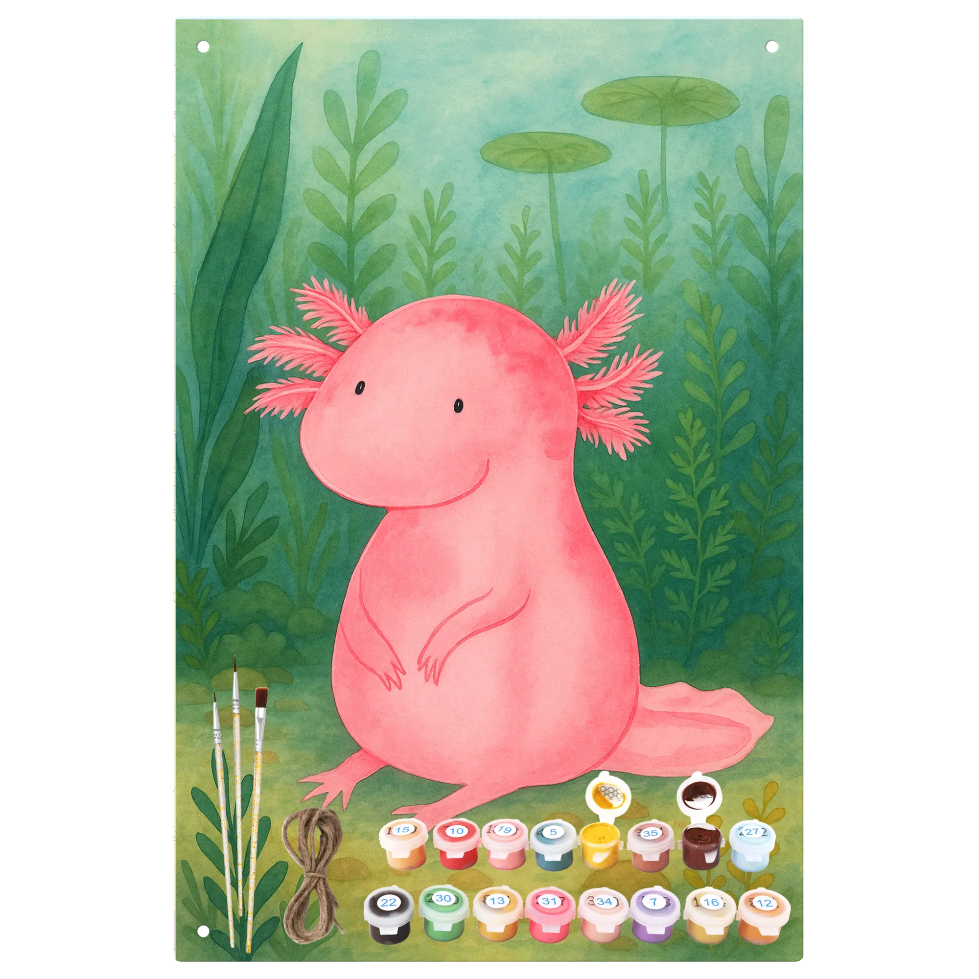 Malen nach Zahlen Metallschild Axolotl Niedlich Design