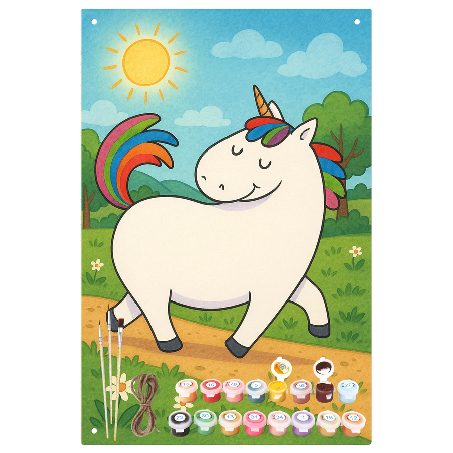 Malen nach Zahlen Metallschild Einhorn Stolzieren Design