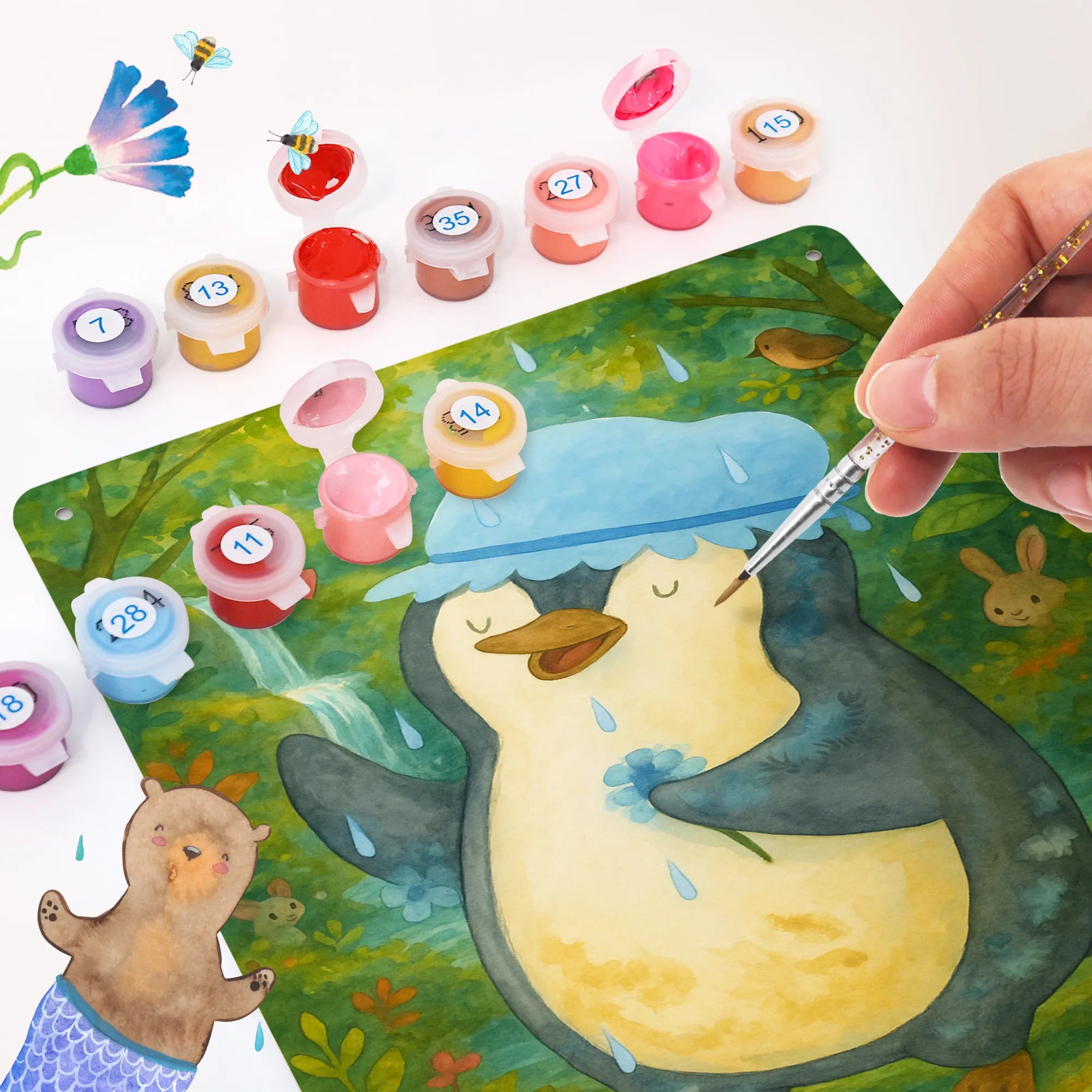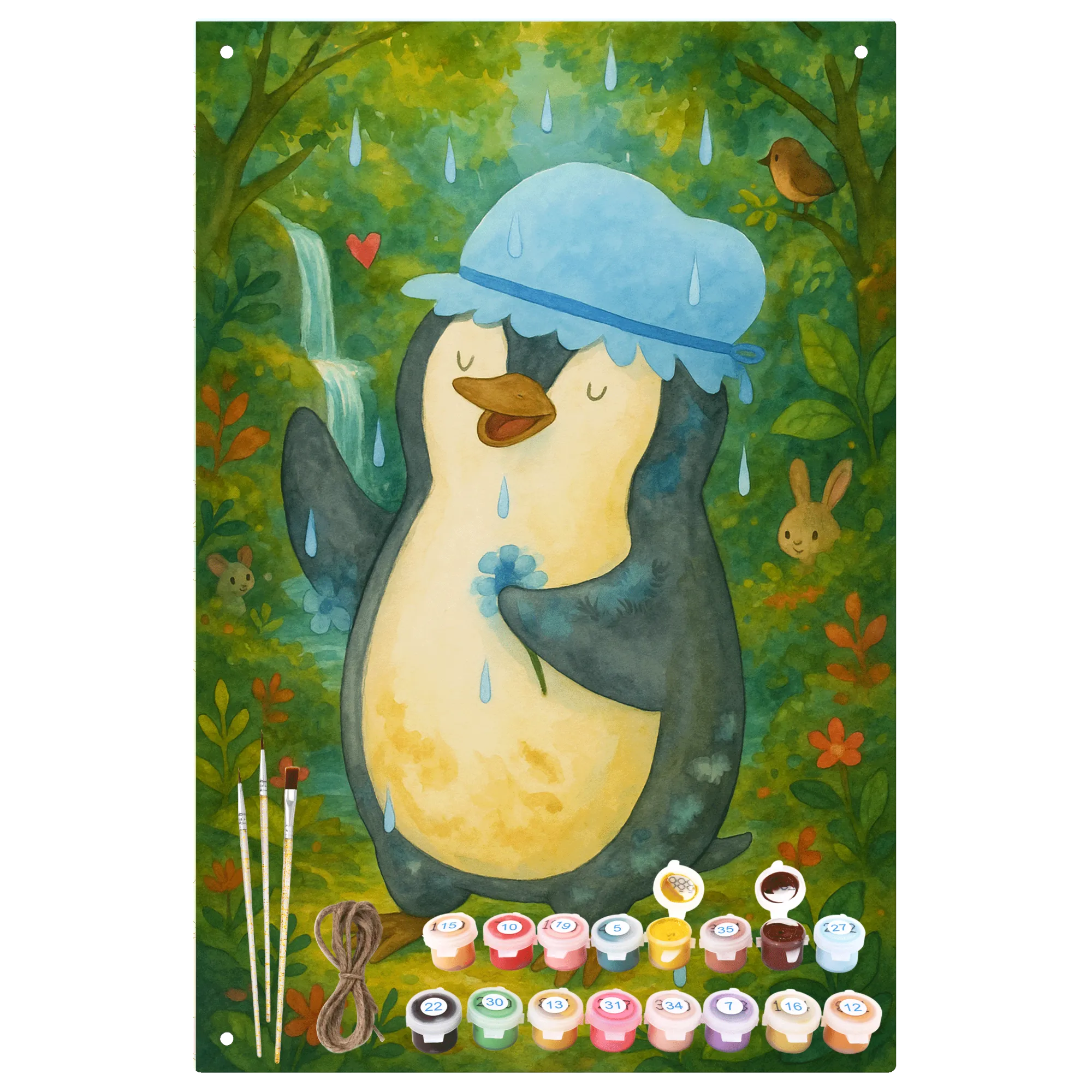 Malen nach Zahlen Metallschild Pinguin Duschen Design