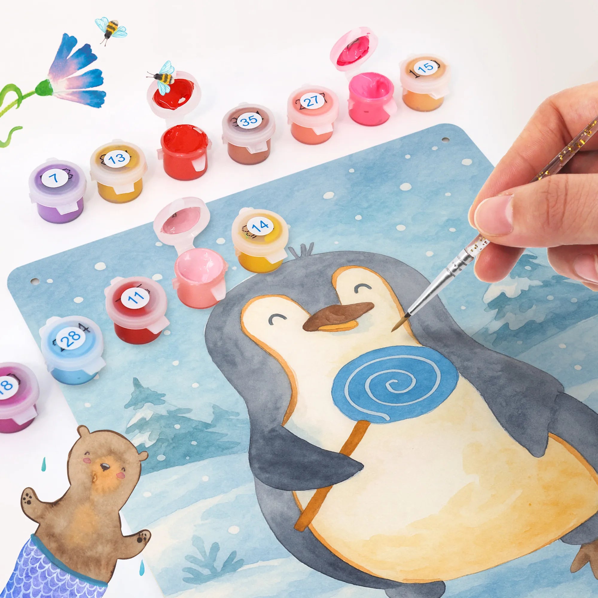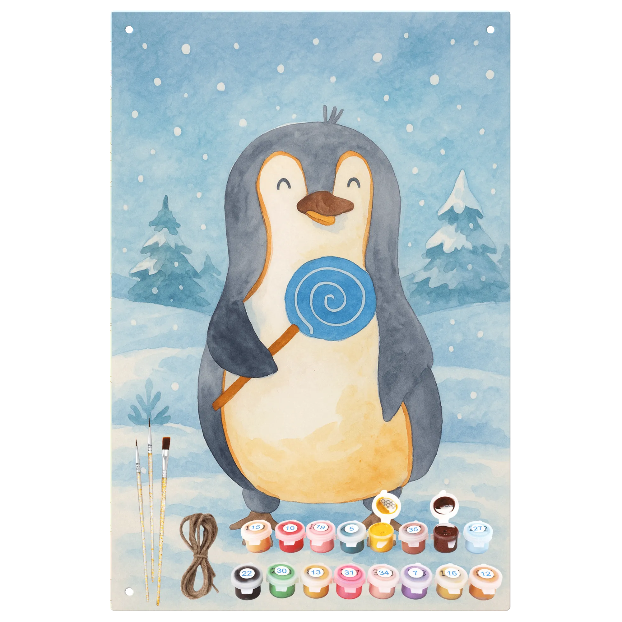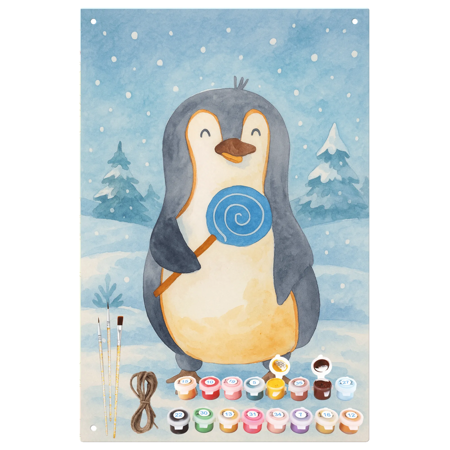 Malen nach Zahlen Metallschild Pinguin Lolli Design