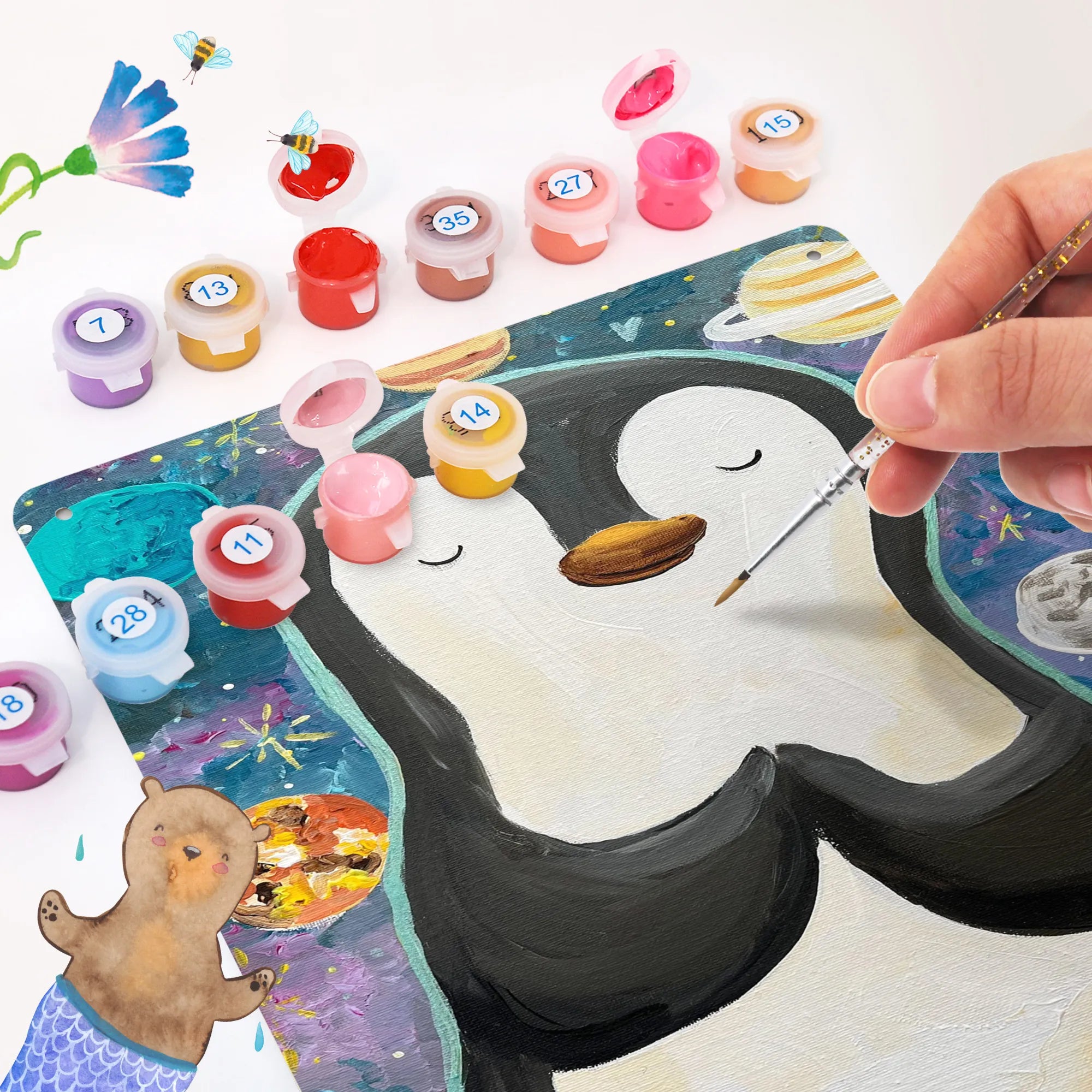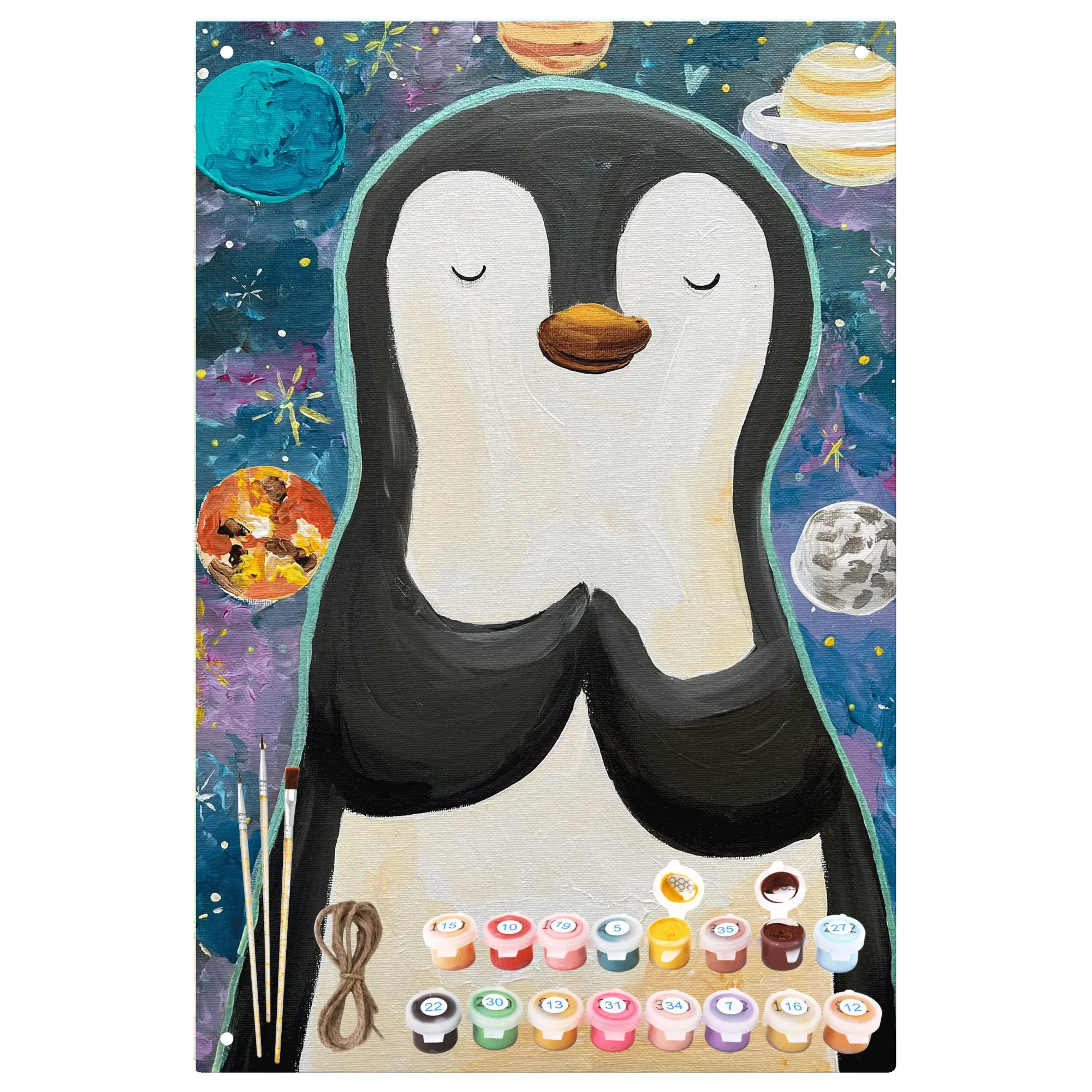 Malen nach Zahlen Metallschild Pinguin Universum Design