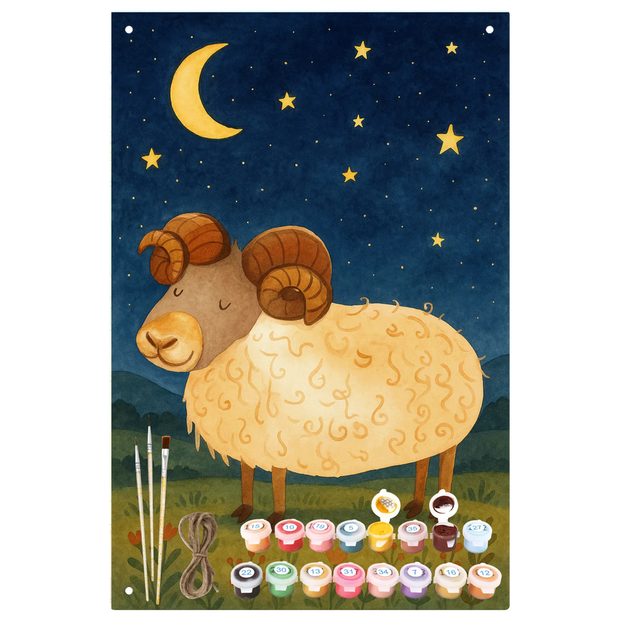 Malen nach Zahlen Metallschild Sternzeichen Widder Design