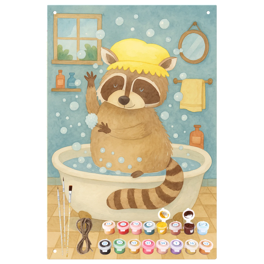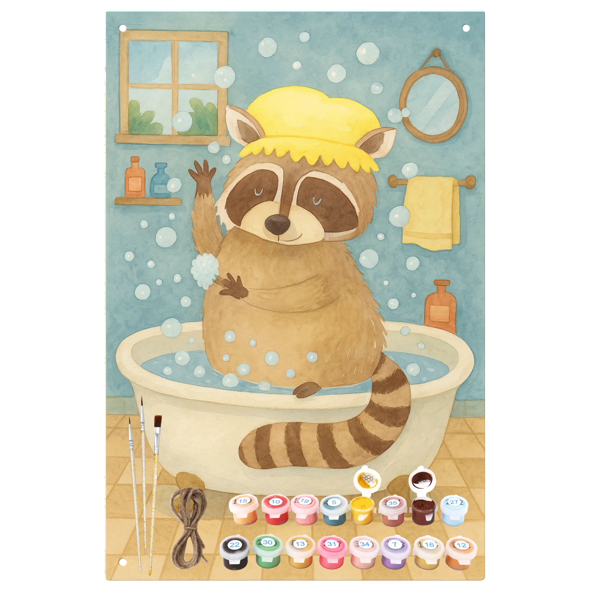 Malen nach Zahlen Metallschild Waschbär Design Malen, Kreativität, Ausmalbild, Bastelidee, Künstler, DIY, Baseln, Malen nach Zahlen, Kunstwerk, Tiermotive, Gute Laune, lustige Sprüche, Tiere, Fröhlich, Tagträumen, Plan, waschen, Seifenblasen, Waschbär