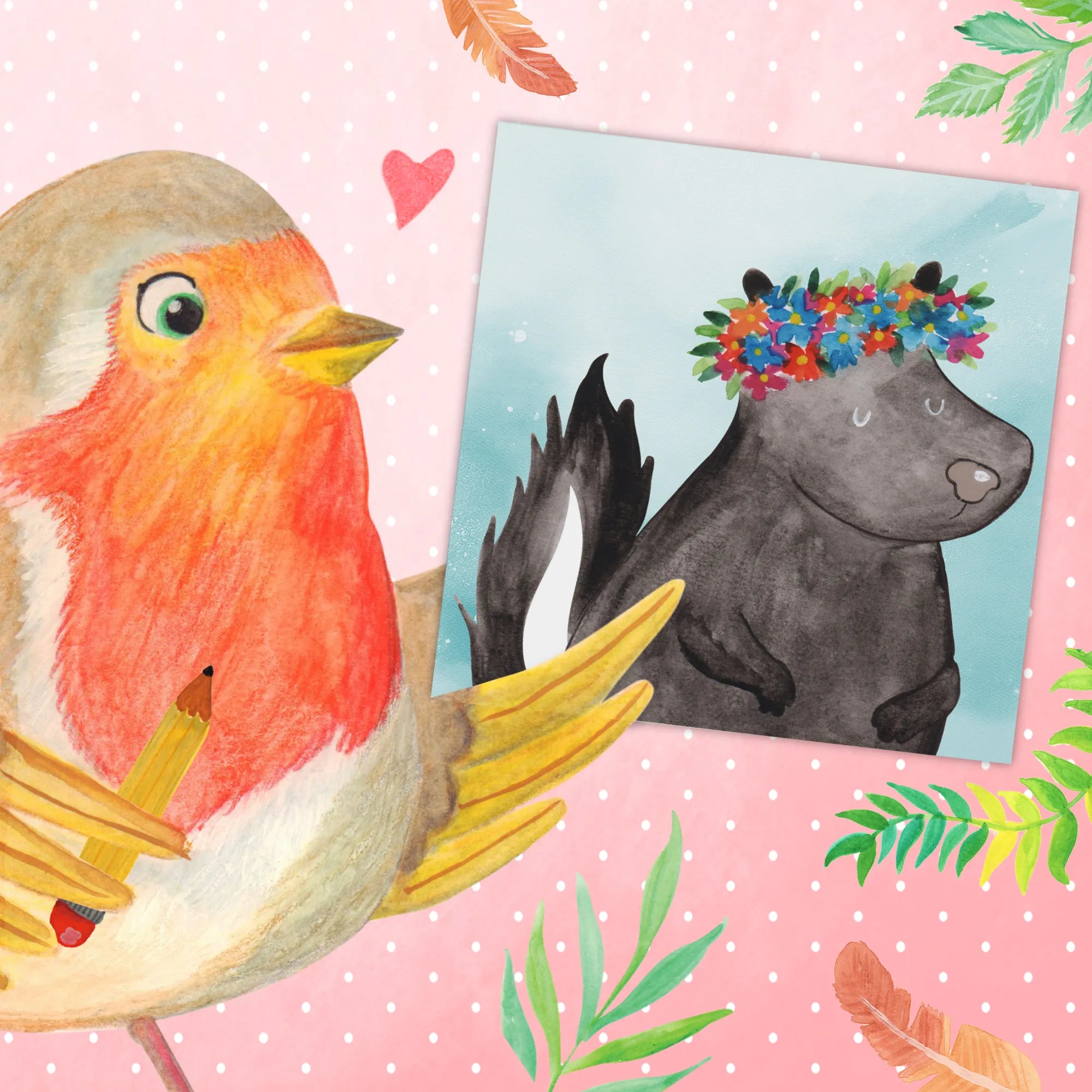 Skunk Blumenmädchen Aquarell – liebenswertes Skunk-Motiv