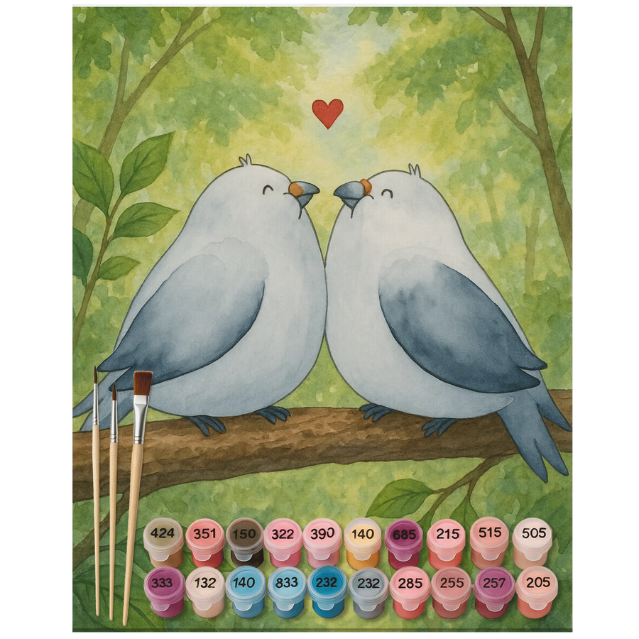 Malen nach Zahlen Turteltauben Liebe Design - Ohne Rahmen - 24 Farben (Standard)