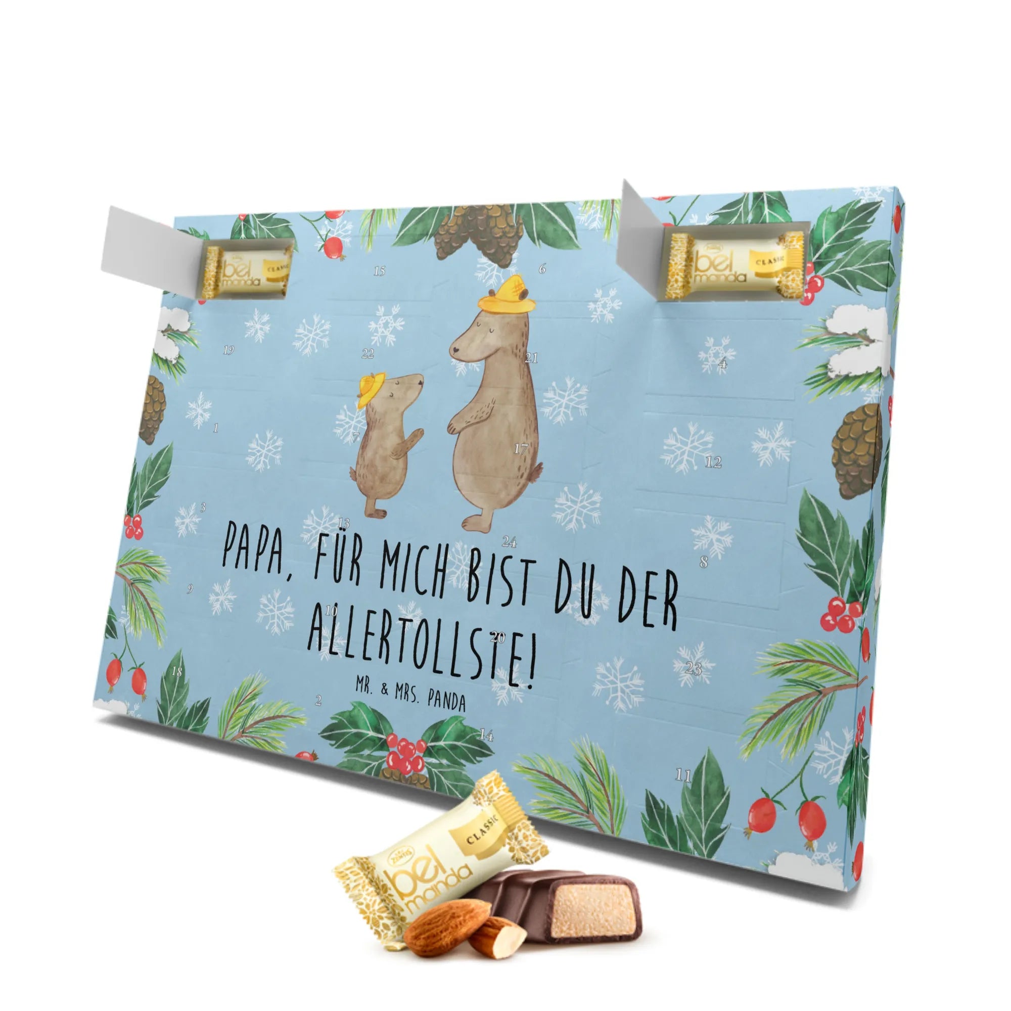 Schneide die hektischen Vorweihnachtstage auf und mache jedem „Papi“, „Papa“ oder „Vater“ eine Freude, die sie so schnell nicht vergessen werden. Die Familie bedeutet alles, und dieser Adventskalender von Mr. & Mrs. Panda feiert genau das mit Liebe, Freude und köstlichem Marzipan. Der perfekte Adventskalender für die Familie und alle, die ihr am Herzen liegen!