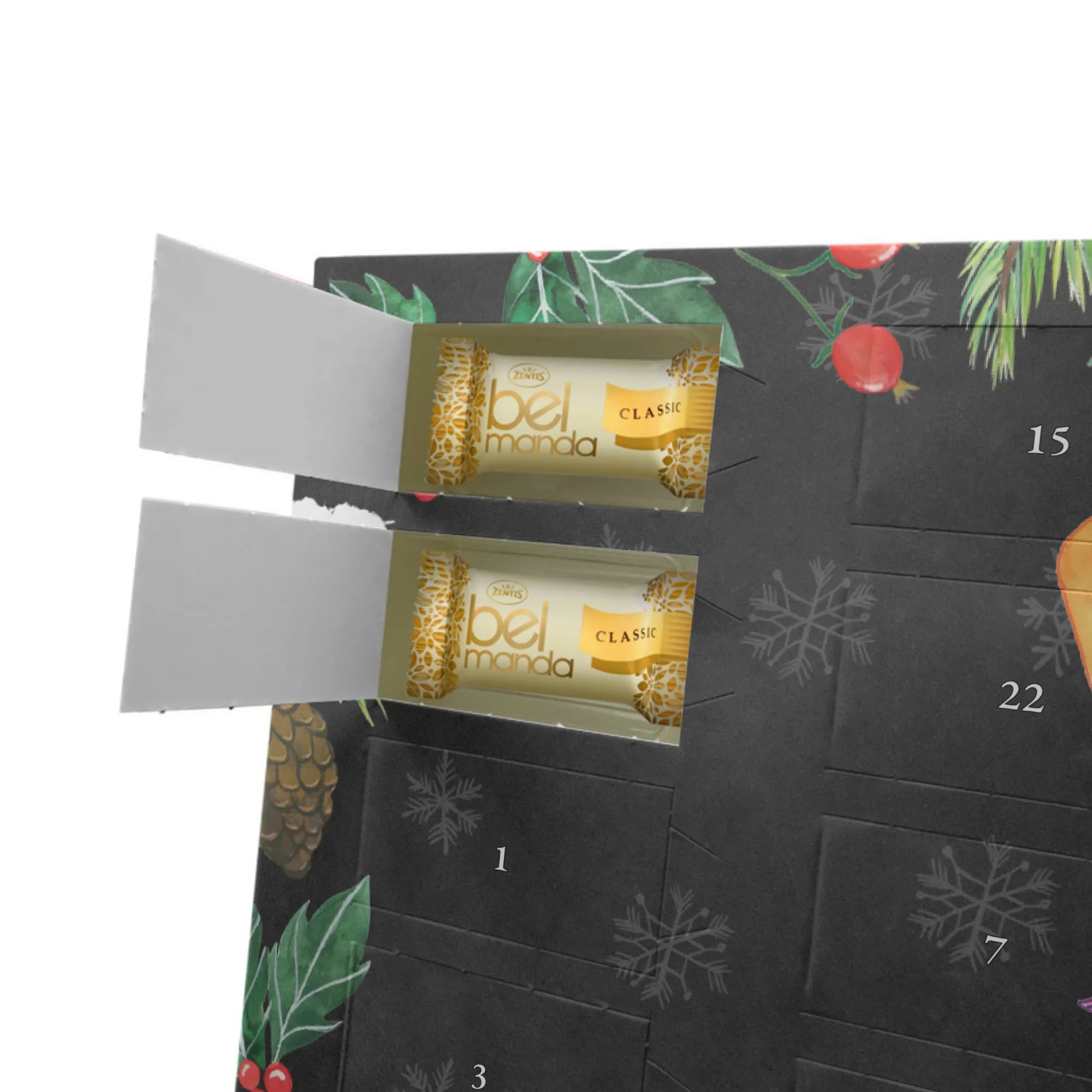 Bereite dir selbst oder deinen Liebsten jeden Tag mit dem Marzipan Adventskalender von Mr. & Mrs. Panda Freude. In einer Größe von 325 mm x 225 mm x 27 mm bietet dieser Kalender 24 Tage puren Marzipangenusses. Wunderschöne Illustrationen und inspirierende Sprüche schmücken ihn und machen ihn zu einem wahren Weihnachtsmärchen. Die seidenmatte Oberflächenveredelung hebt die Details der Illustrationen hervor und die bedruckten Seitenflächen verleihen ihm eine edle Note. Ganz nach Wunsch kann der Kalender aufgehängt oder aufgestellt werden. Beachte bitte, dass er Spuren anderer Schalenfrüchte enthalten kann. Dieser Kalender ist mehr als nur eine Süßigkeit – es ist ein Erlebnis der Sinne in der Adventszeit.